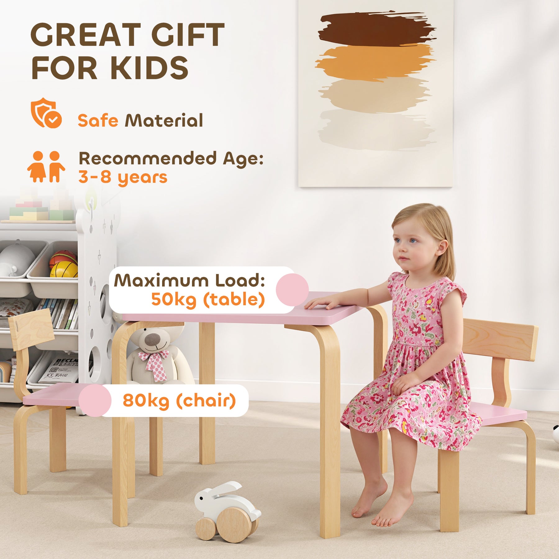 Tired of scattered toys and art supplies? It's a constant worry when little ones use adult-sized furniture, risking tumbles and discomfort. The Qaba kids table and chair set offers a solution. The elegant curved wood design of the toddler table and chair set provides a stable, dedicated space with smooth edges, giving you peace of mind while your child enjoys a comfortable spot for creativity and snacks.