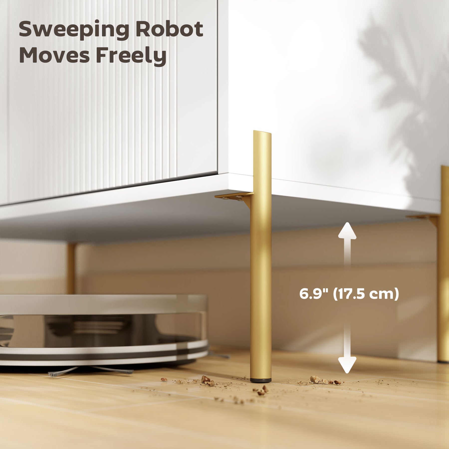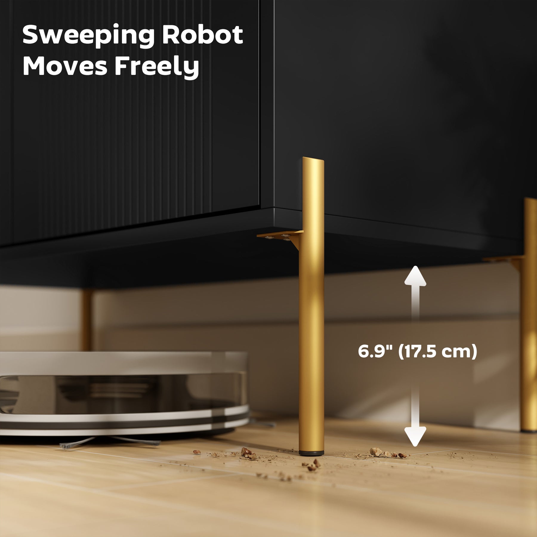 - • High 6.9" (17.5 cm) legs allow for easy robot vacuum cleaning underneath