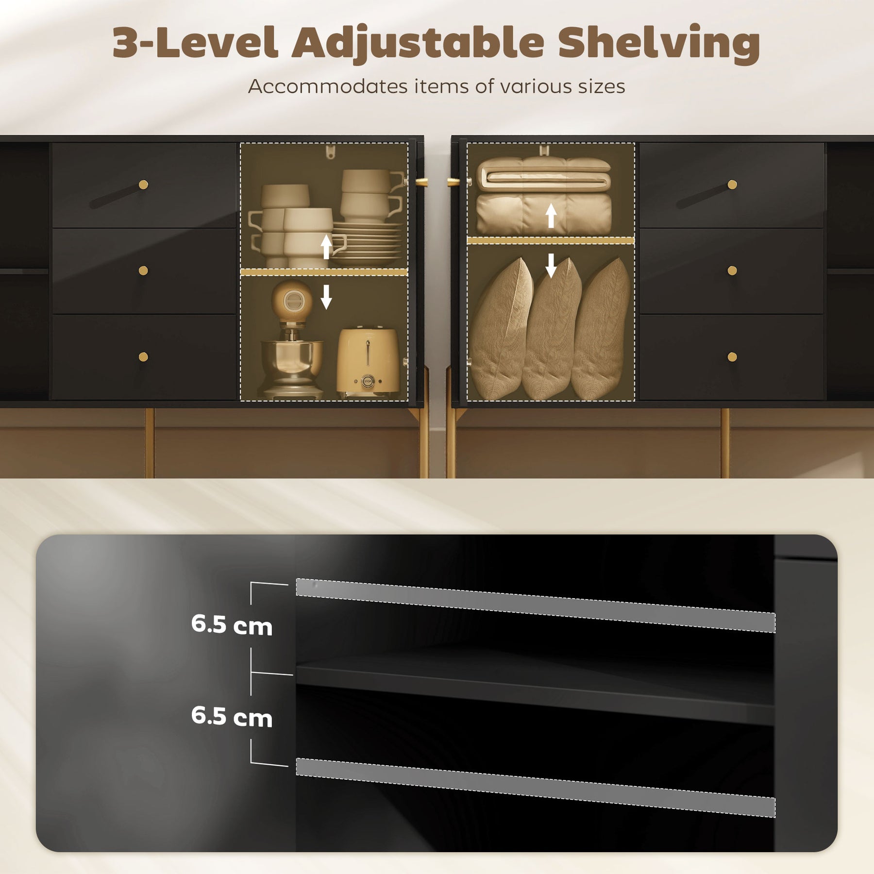 Tired of a cluttered living room and uninspired decor? The daily mess can detract from your home's beauty, while flimsy furniture adds a layer of worry. The HOMCOM modern sideboard offers a serene solution. Its generous storage tidies your essentials, while the chic black and gold design elevates your space. A unique five-leg structure provides enhanced stability, ensuring this buffet cabinet brings both style and steadfast organization to your home.