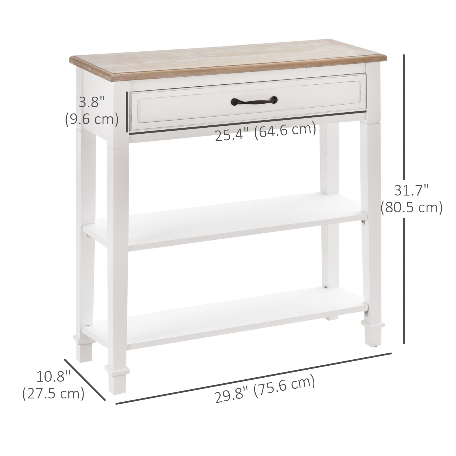 - • Overall Dimensions: 29.8" W x 10.8" D x 31.7" H (75.6 x 27.5 x 80.5 cm)