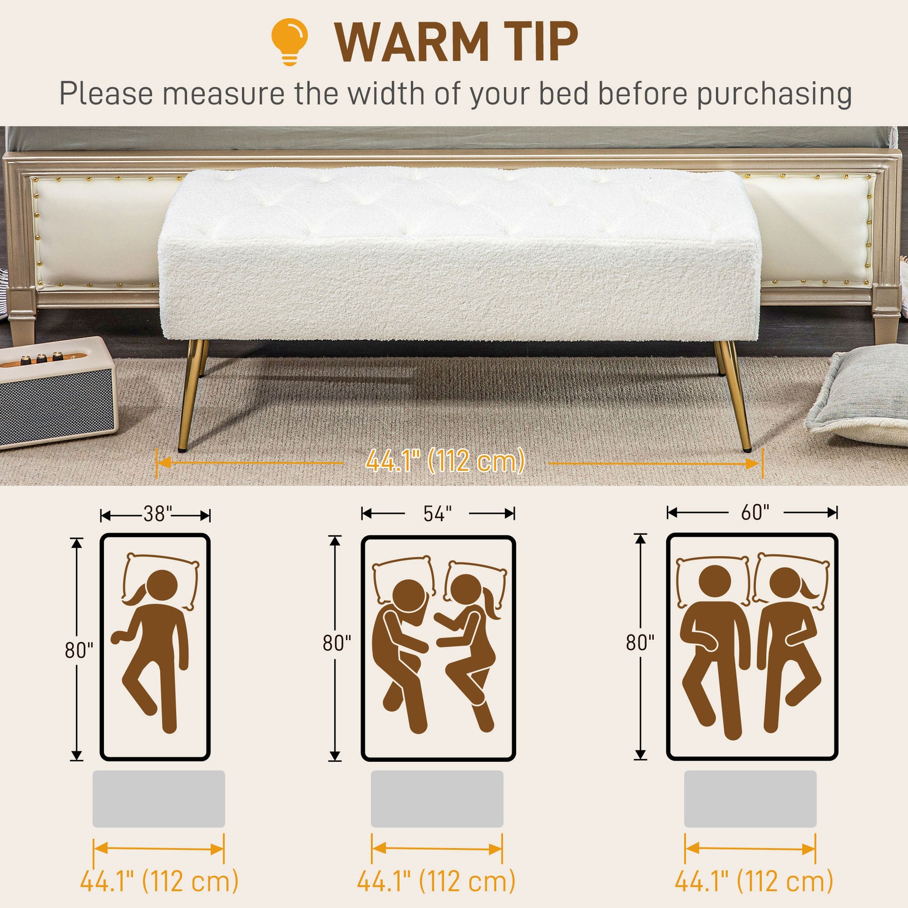 Are you looking for an elegant and practical bench seat? HOMCOM has got you covered with this modern bedroom bench. It can serve as a bench sitting, bed end bench, or entryway bench, which fits the living room, dining room, bedroom, or hallway. It's covered in lamb's wool-feel fabric with a thick foam padding cushion for a comfortable sitting experience. Make your house feel like a home with HOMCOM.