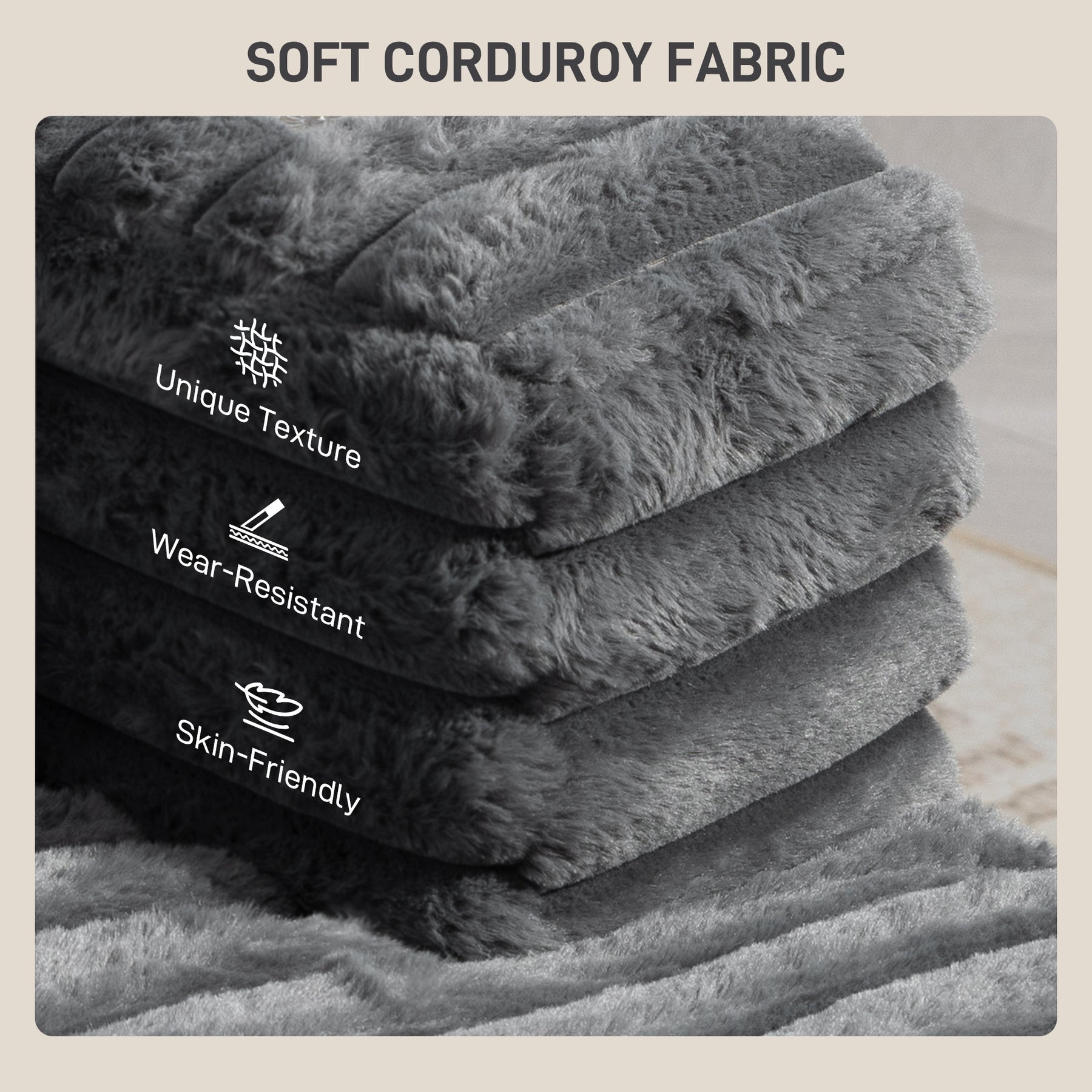 - • Material: Corduroy (100% Polyester), Foam, Multi-Layer Board, Plastic