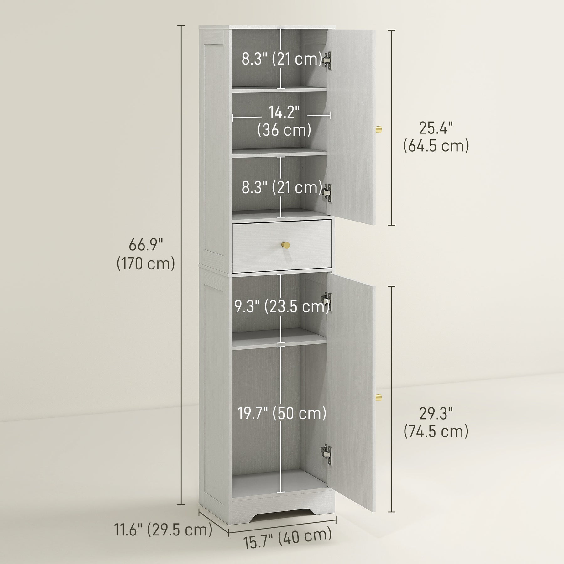 - • Overall Dimension: 15.7" W x 11.6" D x 66.9" H (40 x 29.5 x 170 cm)