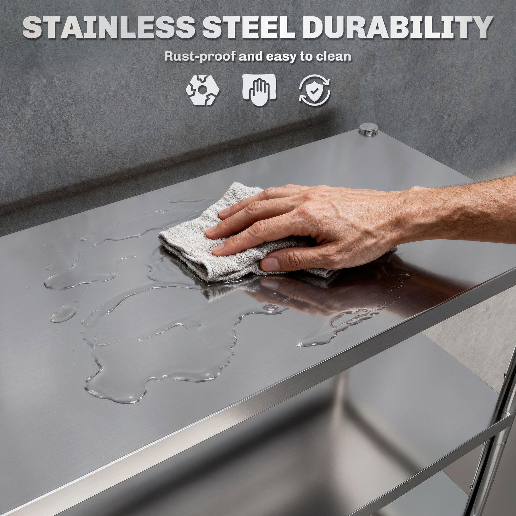 Tired of cluttered countertops and fragile storage solutions? The HOMCOM kitchen storage shelves, crafted from stable 201 stainless steel, resists rust and stains, ensuring a sleek look even in humid kitchens. With 13 adjustable levels, it adapts to your needs, creating a tidy, efficient space. Each shelf supports up to 50kg, offering peace of mind for heavy appliances. Elevate your organization with strength and style.