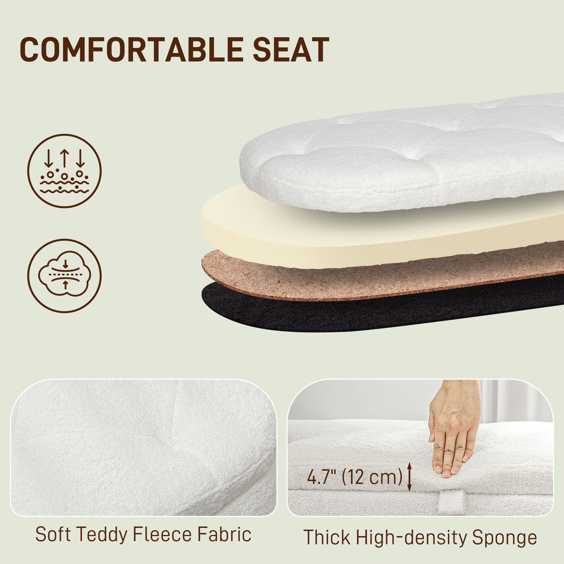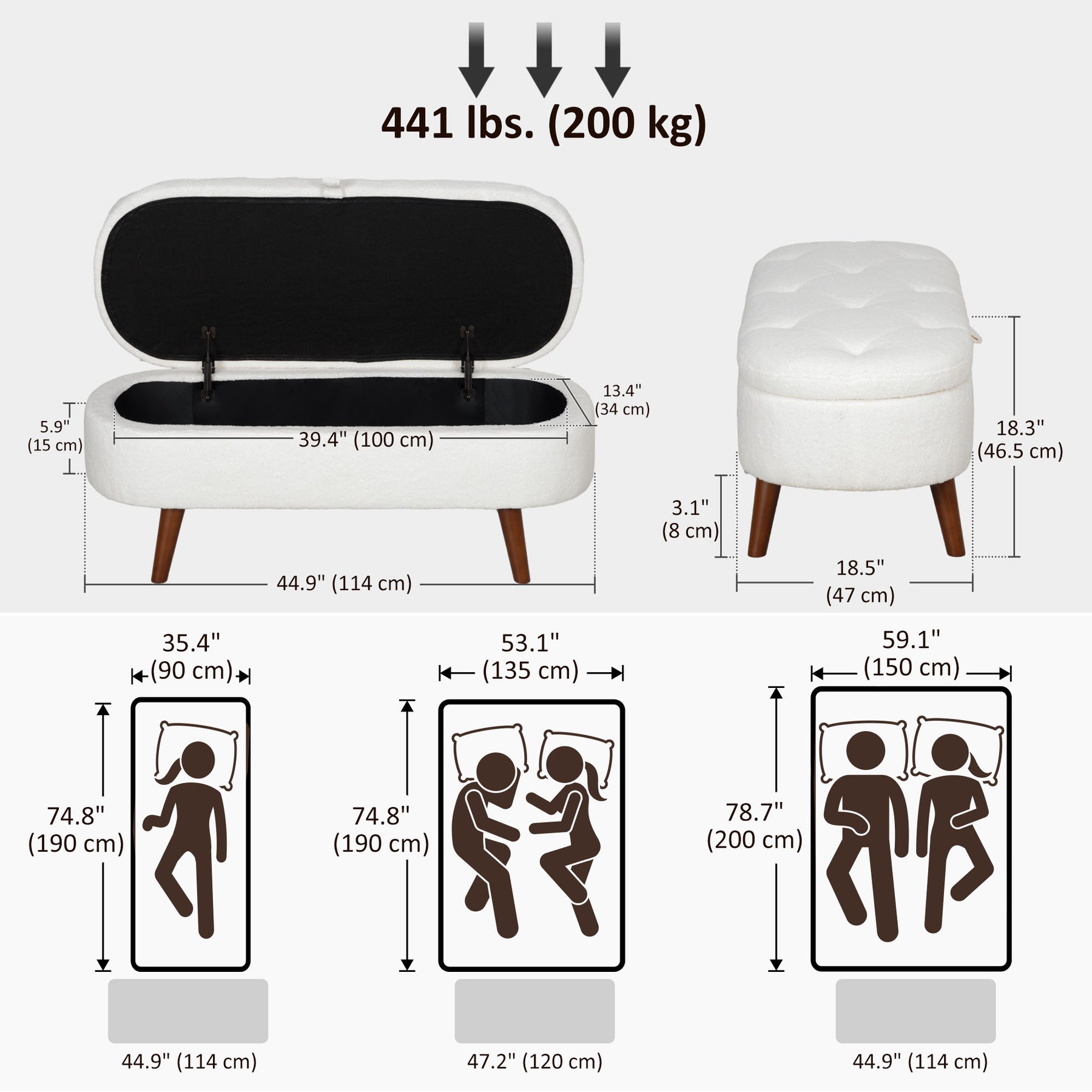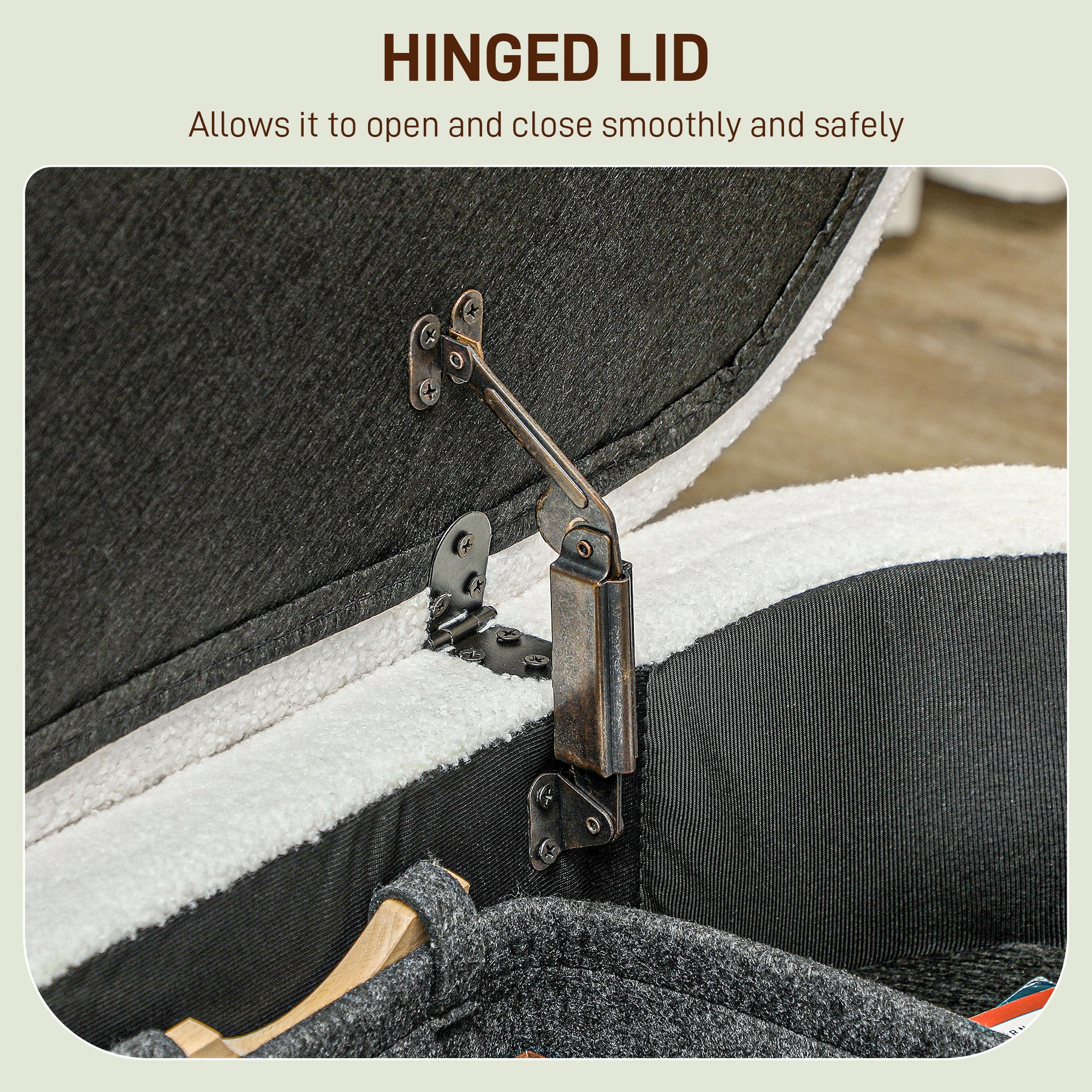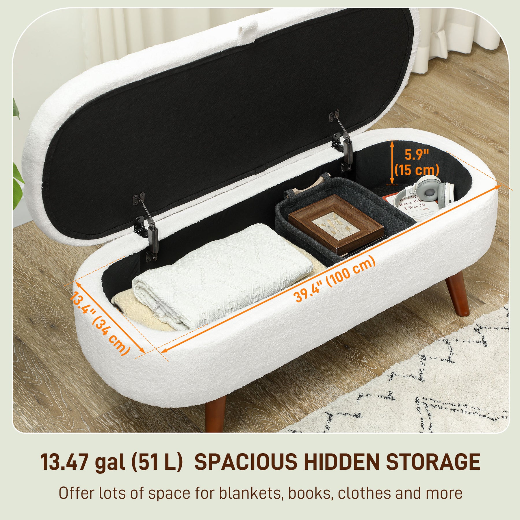 Discover the charm of the storage ottoman bench from HOMCOM. Tuck away your treasures discreetly with its hidden storage under a hinged top. Revel in the luxury of teddy fleece fabric and a tufted diamond-patterned top, offering both a plush footstool and hidden storage. Suitable as a hallway bench, end of bed bench, or ottoman stool, this oval-shaped beauty with rubber wood legs transforms any room with a cozy, versatile touch.
