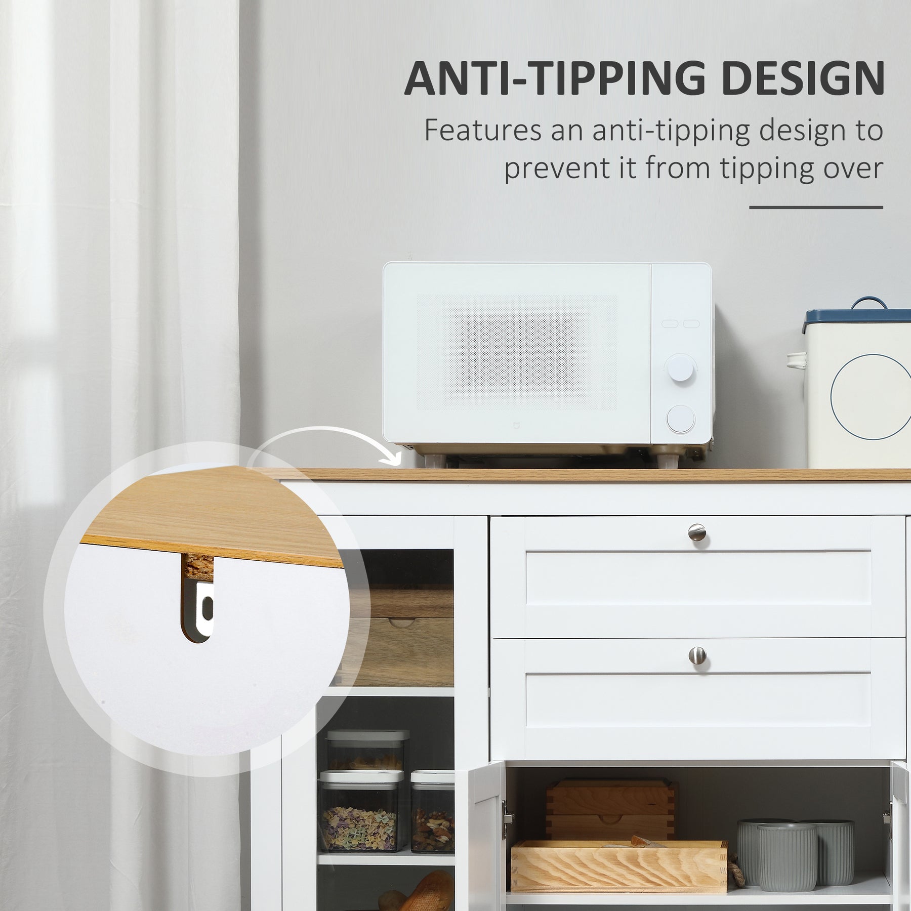 - • Anti-topple design helps prevent kitchen buffet from tipping over