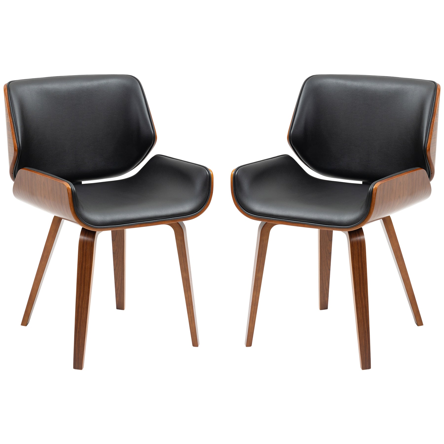 This charming dining chair, with its vintage flair, fuses wood and PU leather upholstery to create a simple yet modern look. Placing it in your home enhances any room with an additional elegant touch. Sit back and relax on the upholstered cushioned seat with curved back added support and comfort to you. This chair set has solid wood legs for a stable seating area that's suitable for daily use.