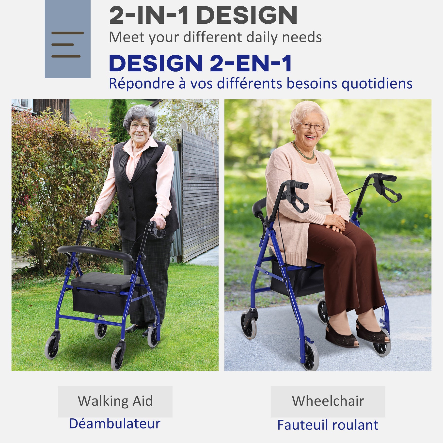 - • 2-in-1 design, both a rollator walker and a wheelchair