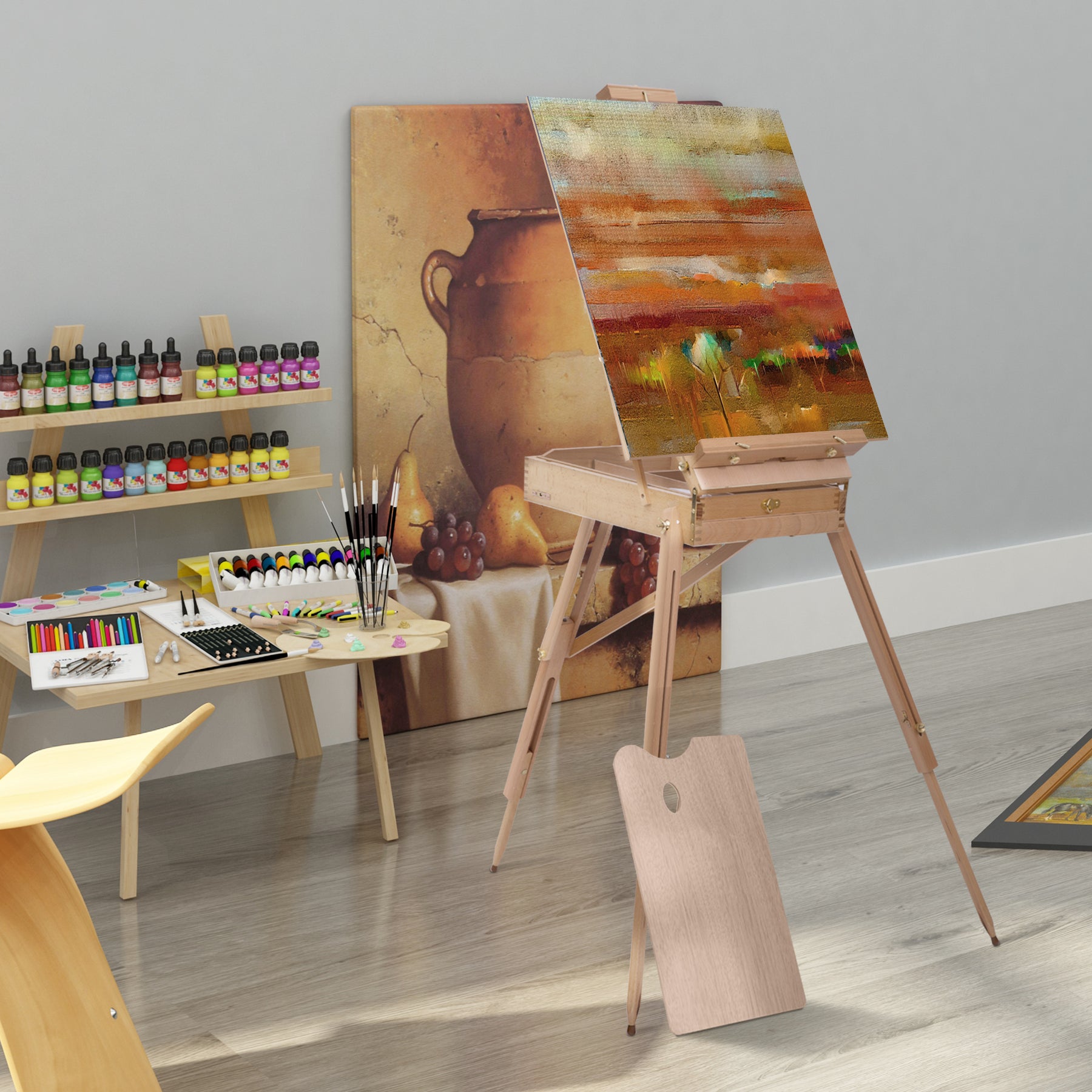 - • Comes with painting palette, organizational drawer and carrying strap
