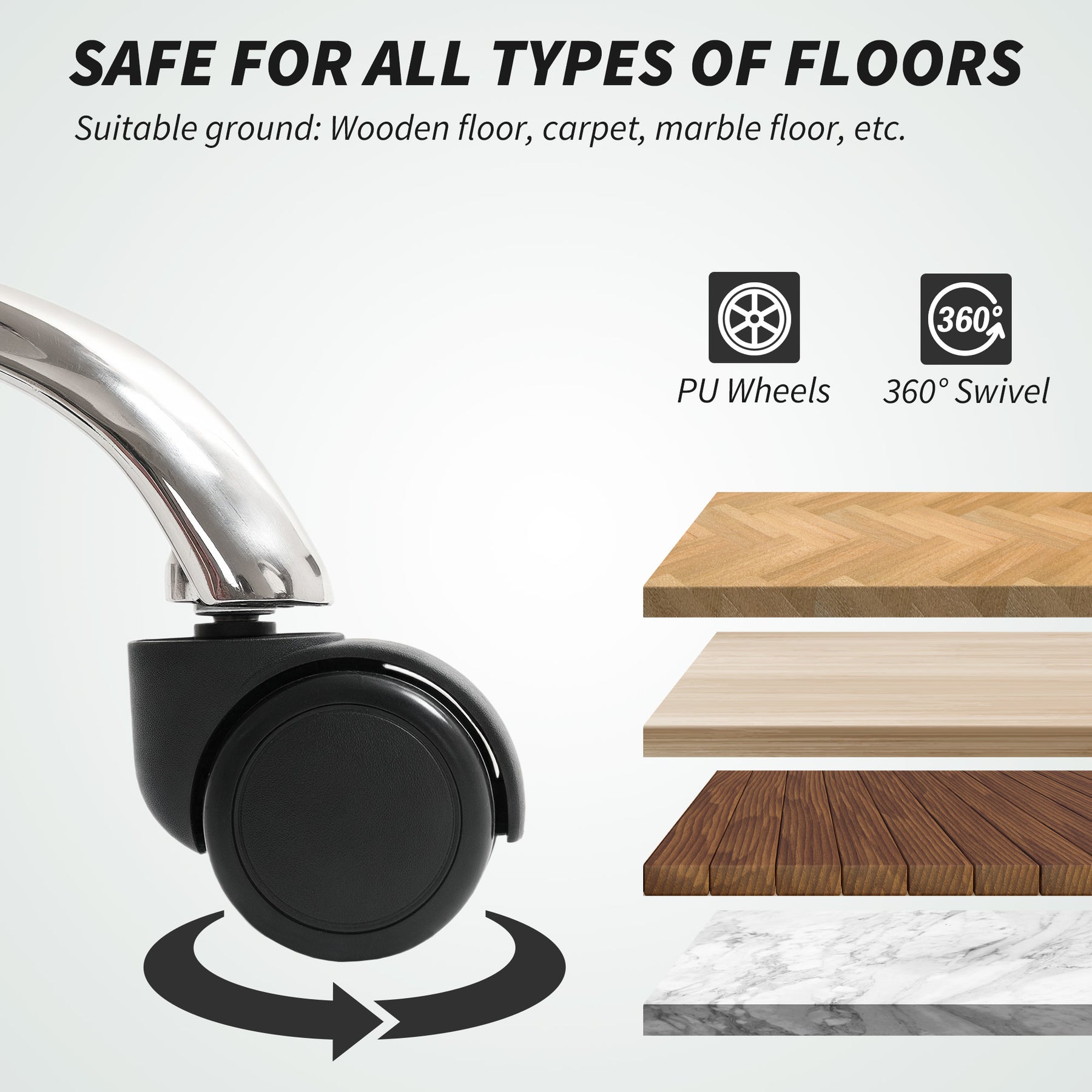 - • 360° smooth swivel, silent PU wheels glide quietly on any floor