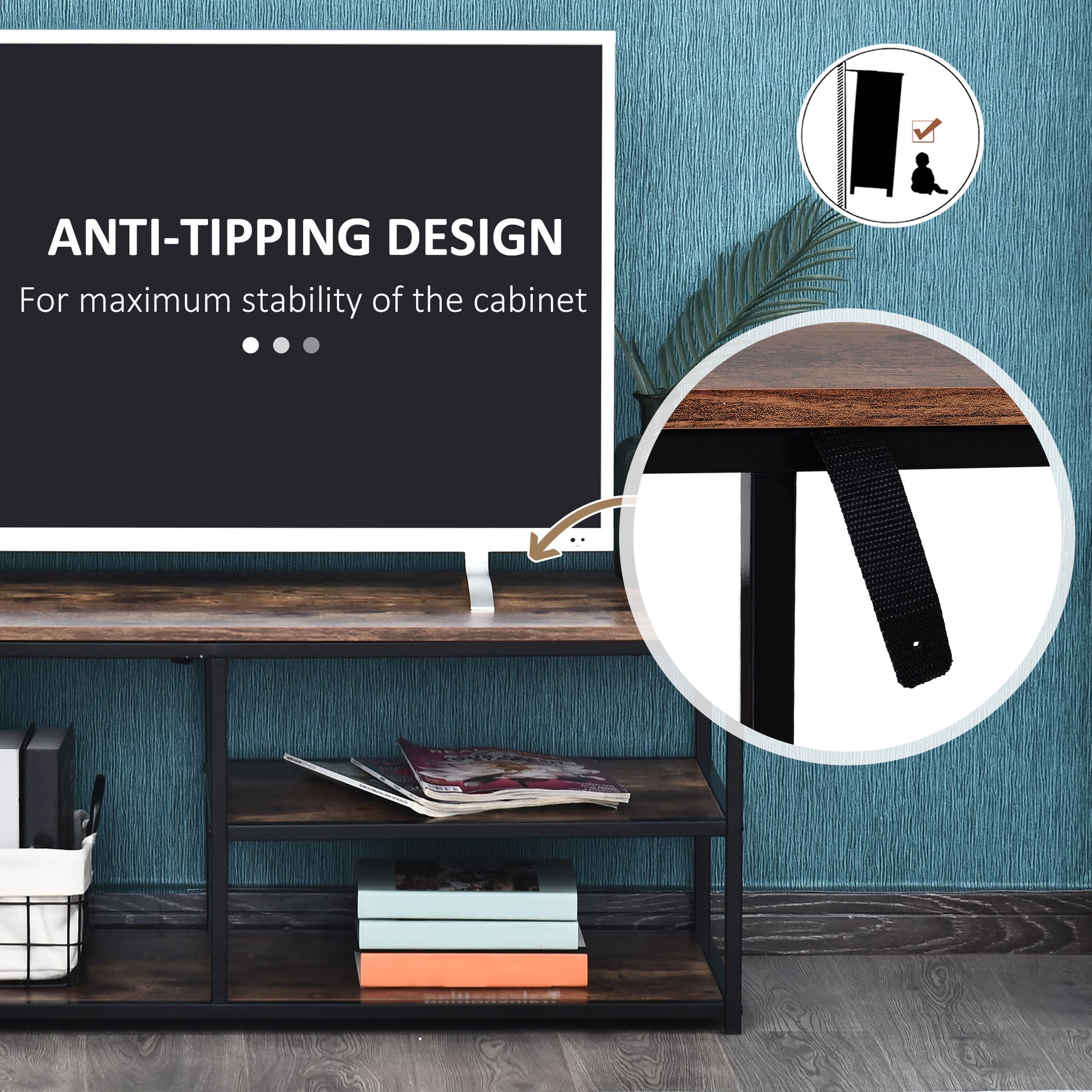 Upgrade your living room with our HOMCOM TV unit for a 55-inch TV. Our media stand has more functions than just holding your TV. This media unit is crafted into a three-level design, featuring a spacious bottom area and middle shelf, both of which are perfect for keeping consoles, cases, and remotes on, alongside the top for your television. With a melamine surface all over for easy cleaning, each worktop is finished in a dark chestnut brown tone, which complements the black frame beautifully.