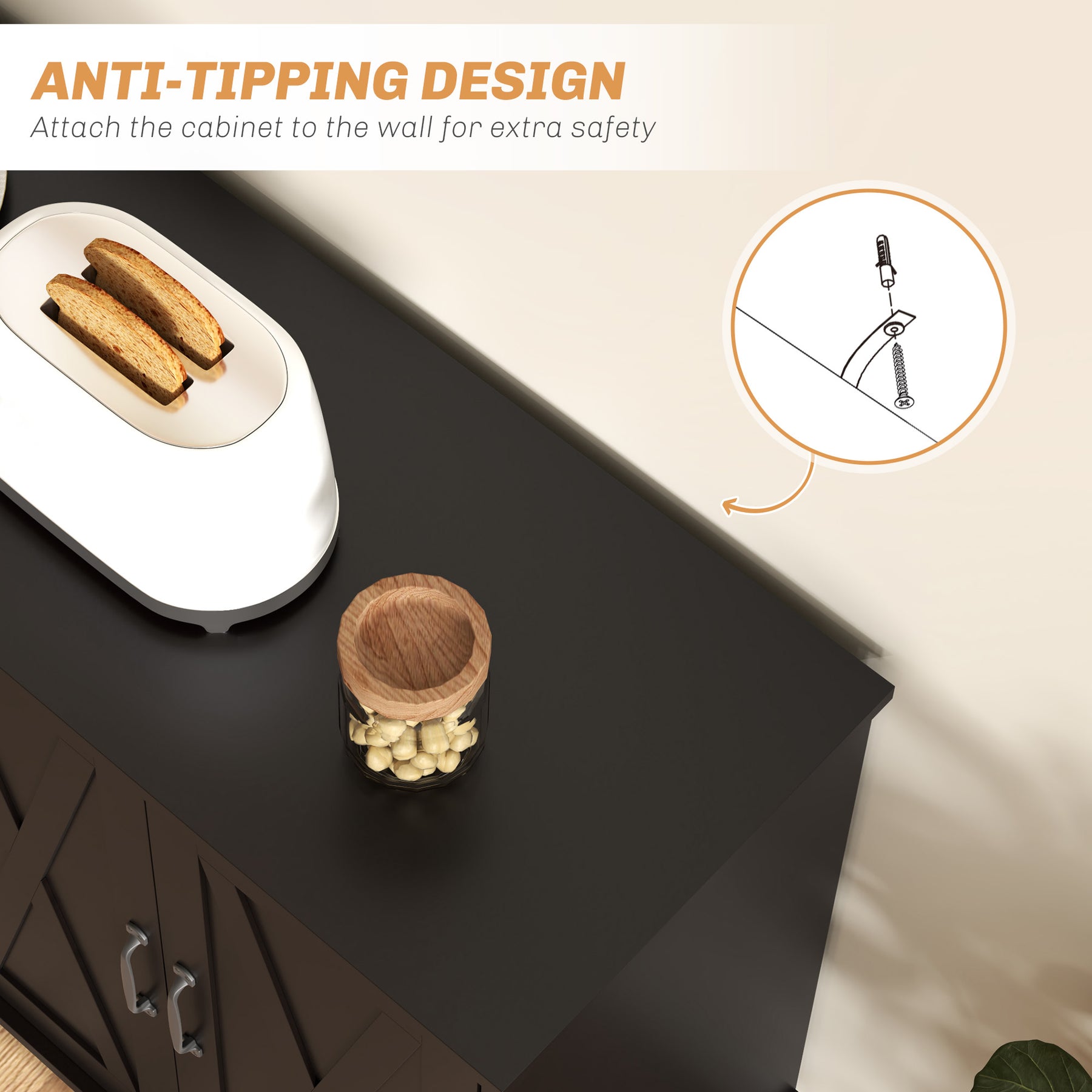- • Anti-tipping straps allow you to secure it to the wall for safety