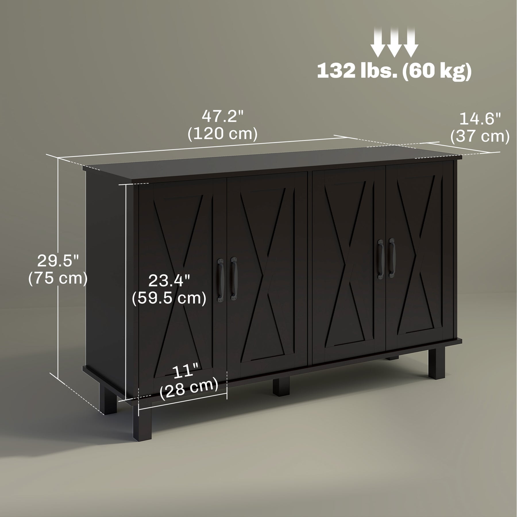 - • Overall Dimension: 47.2" W x 14.6" D x 29.5" H (120 x 37 x 75 cm)