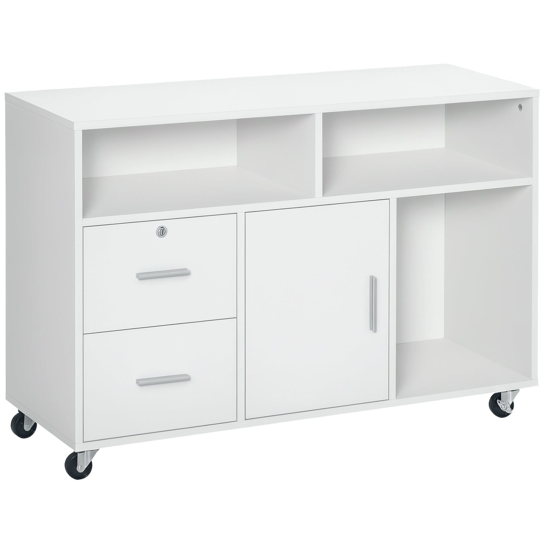 Do you have an office space that's lacking in storage? Stop losing things you need because you throw it "anywhere" or pile it on top of your desk. This HOMCOM lateral file cabinet is ready to be your assistant through the busy workday. Have everything you need and know where it is so you're spending more time being productive rather than shuffling through that stack of papers trying to find that one thing. If you stay ready, you don't have to get ready with this HOMCOM printer table.