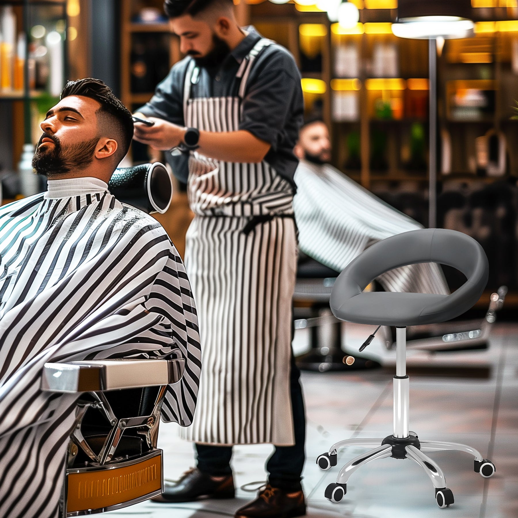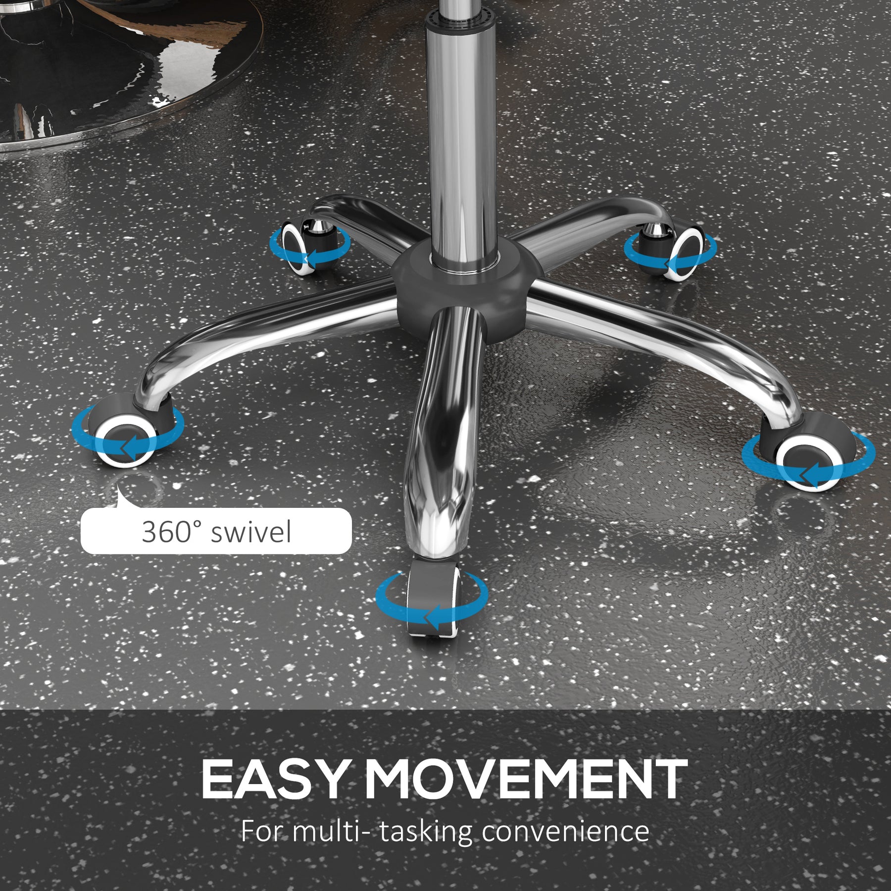 Sit for long periods at work or at home? Or, whether you work in a salon or a tattoo shop, this salon stool from HOMCOM is a great choice for resting while you work. The salon chair adjusts to fit anyone, no matter how tall they are. The comfortable seats with wrapped back allow you to sit for a long time, and five wheels make moving around a breeze. This adjustable stool is great for hair and beauty salons, tattoo studios, or anywhere else a chair like this may come in handy.