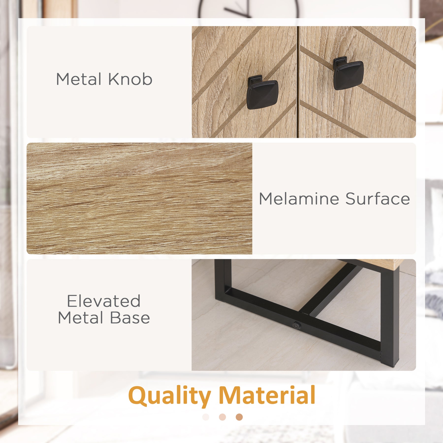 Transform your space with the HOMCOM buffet cabinet with storage, featuring eye-catching Chevron patterns and a chic two-tone effect. Crafted from robust particle board and MDF, this buffet cabinet features an adjustable shelf for versatile storage. Stylish square handles and a robust steel base round out the appeal, making it an optimal choice for any kitchen, living room, or entryway.