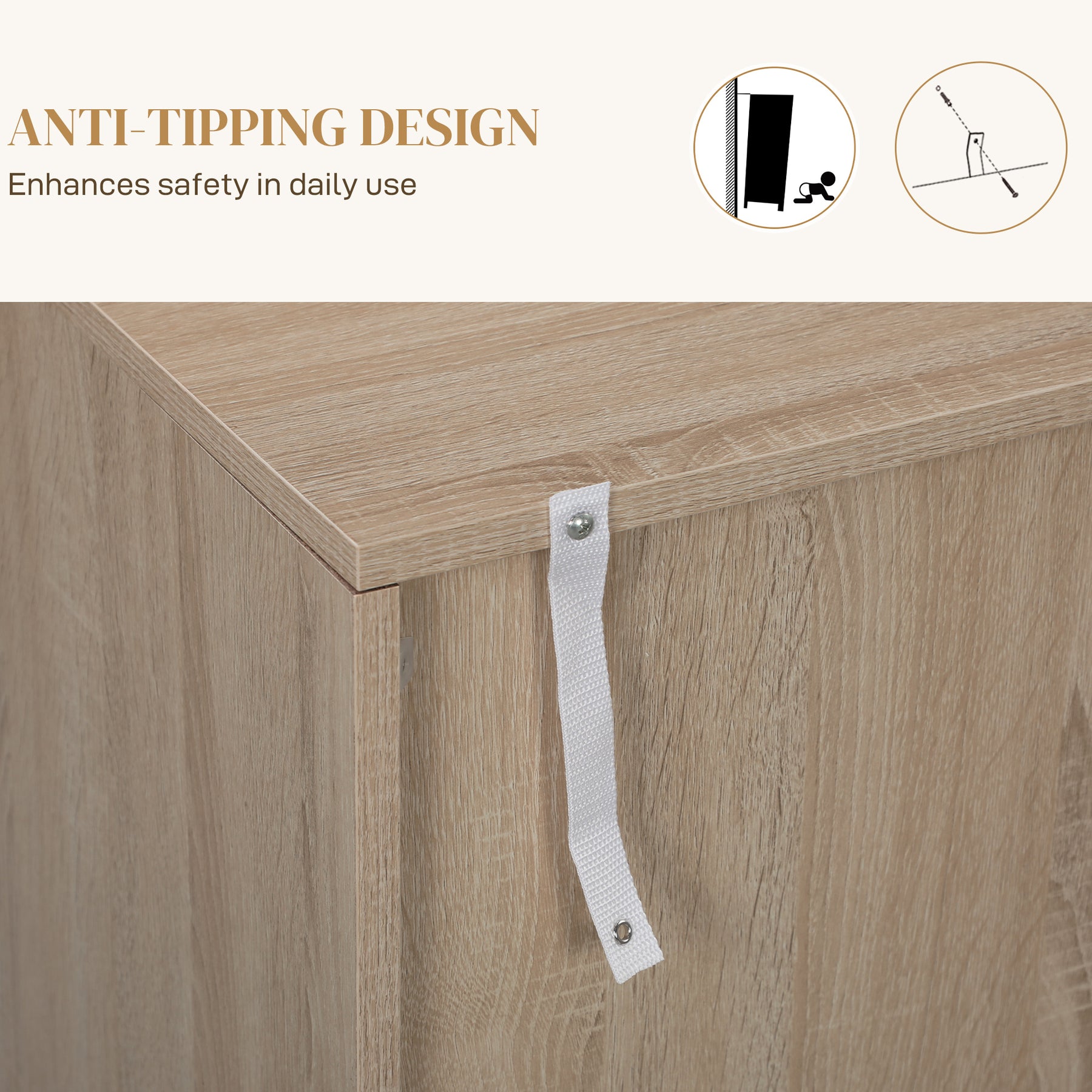 - • Anti-tipping design enhances safety