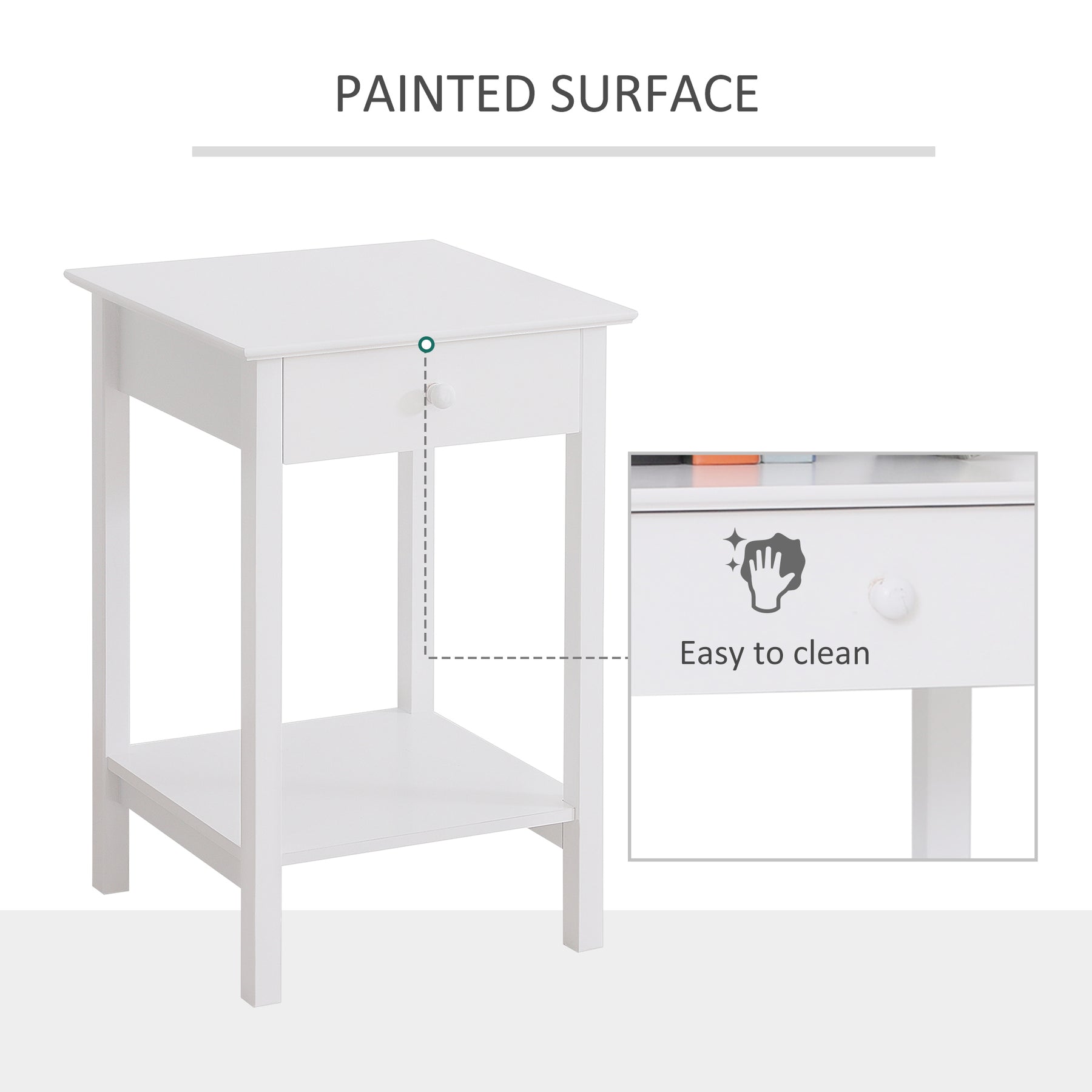 This HOMCOM sofa side table will offer you enough space to place your pyjamas, books, or other small personal items. The end table with storage has a simple, elegant design that suits any interior space. Also, its solid MDF top ensures stability in daily use. This bedside table has a drawer and a lower shelf. Add extra storage to your home with HOMCOM.