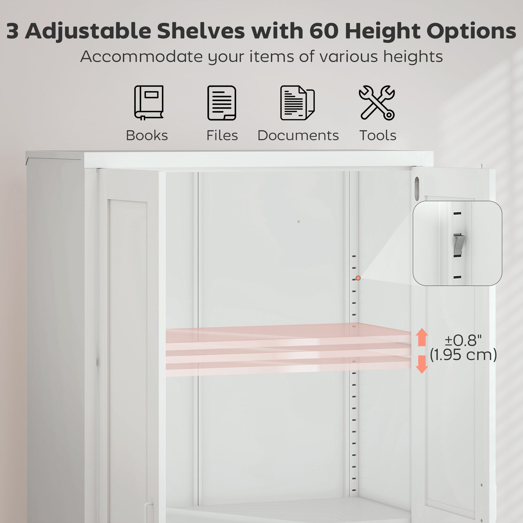 Struggling with clutter that disrupts your home's harmony? This disorganization can make any space feel chaotic and stressful. The HOMCOM metal storage cabinet restores order with its robust steel build and adjustable shelves, letting you customize your storage. Its sleek industrial style enhances any room, from a busy garage to a quiet home office, transforming your cluttered areas into functional, serene spaces. This is more than a file cabinet; it's your solution for organized living.