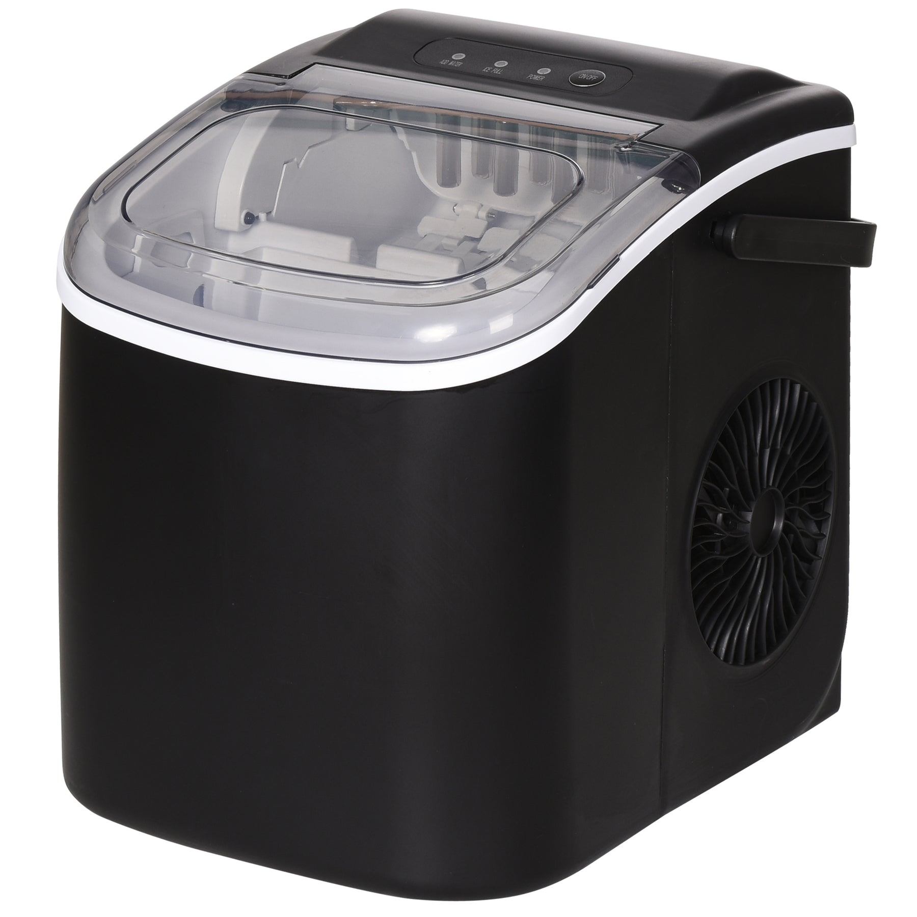 Every party, summertime or beyond, needs an ice cube maker. This HOMCOM ice machine is great for any space. Its compact, low - profile design ensures it won't get in the way. The 0.3 gallon (1.3 L) tank produces up to 26 lbs (12 kg) of bullet-shaped ice every 24 hours, with nine pieces ready every 6-12 minutes. Easily check the ice level of the ice cube maker through the window. The ice machine comes with a convenient basket and scoop.