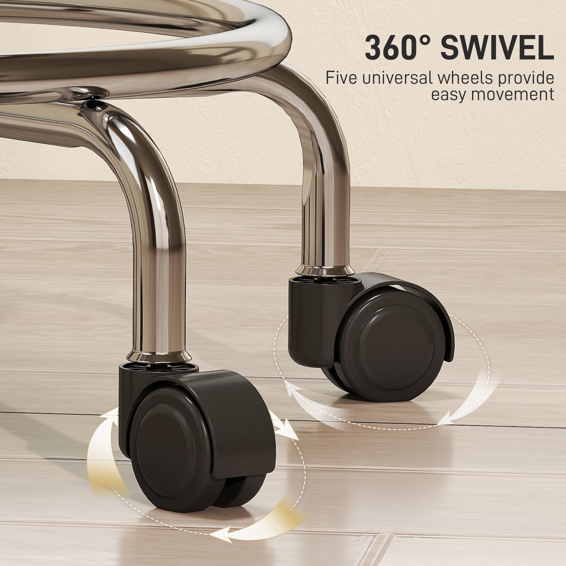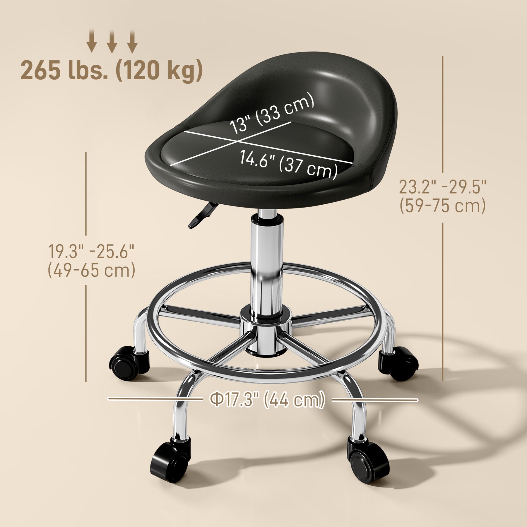 Slide into comfort with the HOMCOM rolling stool, your new favorite salon chair! Filled with thick foam and wrapped in easy-to-clean PU, it offers luxe comfort. Adjust the height from 23.2" to 29.5" to fit your workspace, whether it's a tattoo parlor or home office. Glide effortlessly on five universal wheels with 360 degrees swivel capability. Great for barbershops, bars, and more.