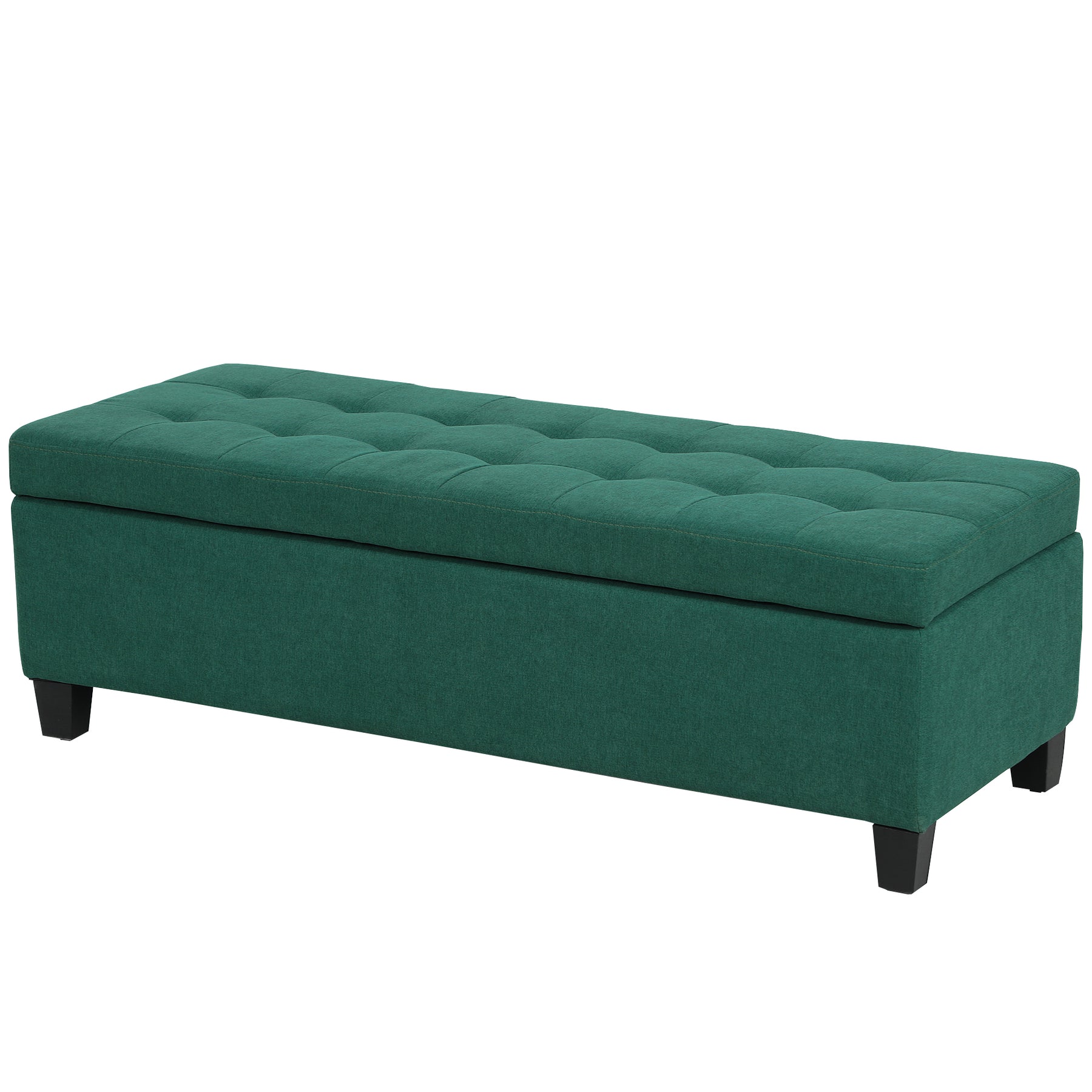 Finding the right style is necessary to help bring a room together and this chic, stylish HOMCOM fabric storage ottoman bench is a great addition to any living room, bedroom, or entryway. It features a beautiful elegant exterior and tufted top, along with firm wooden legs and a roomy interior that is great for storing extra pillows and blankets, shoes, or other clothing and accessories. The storage chest with thick padded cushion provides you with complete comfort and support.