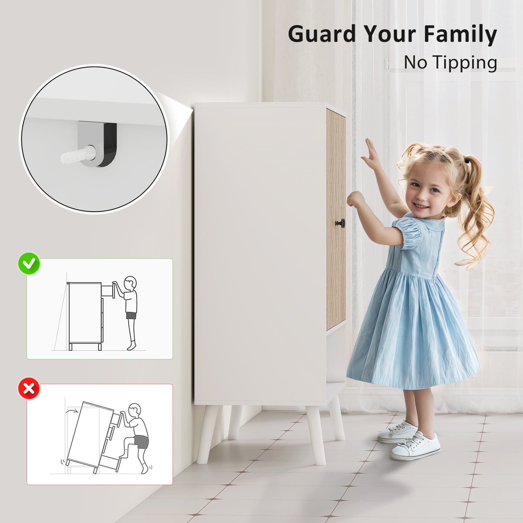 - • Stable particle board and MDF with anti-tip device and adjustable feet ensure safety and stability
