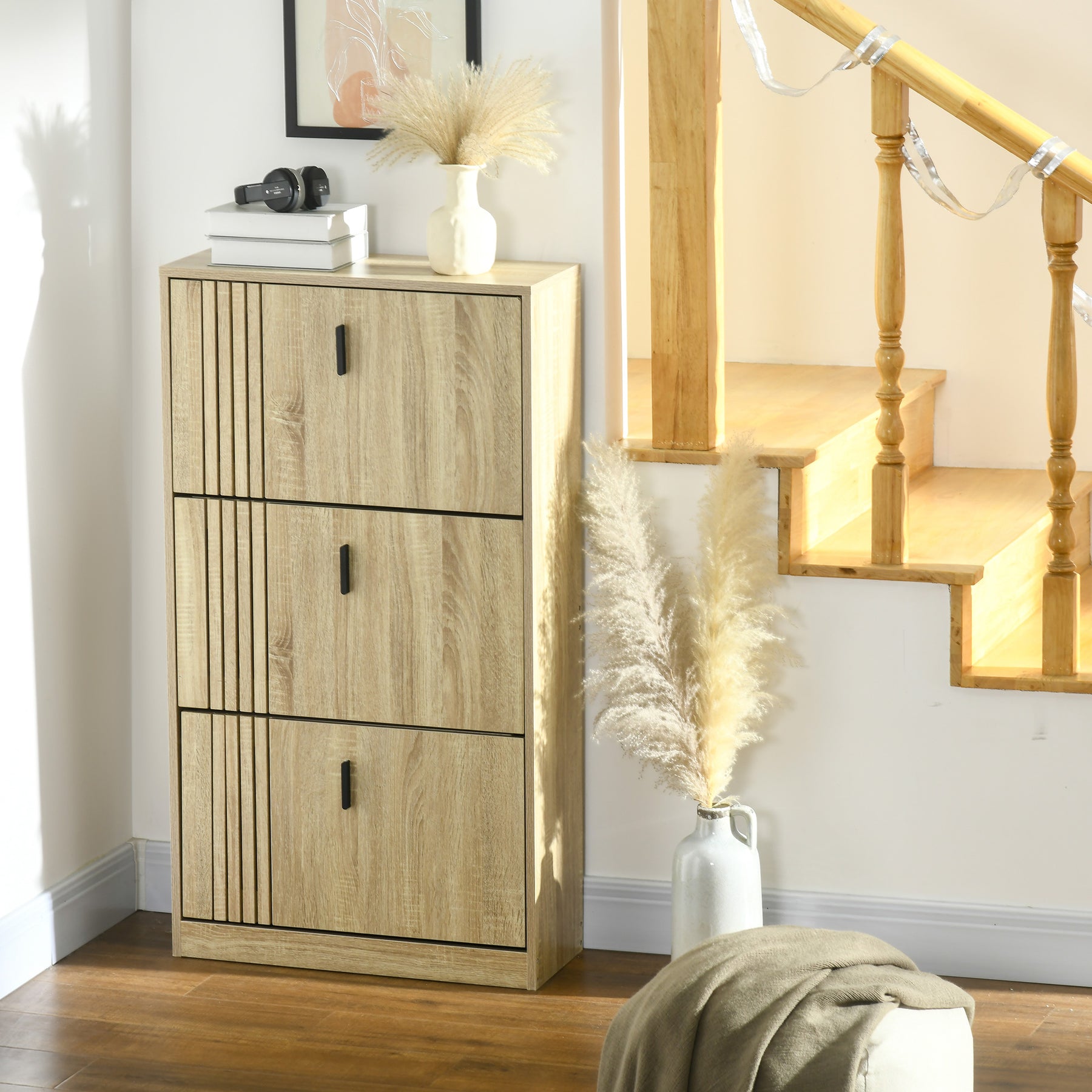 A shoe cabinet is an indispensable piece of furniture for every family, but not every piece can meet your needs. Our HOMCOM narrow shoe cabinet is specially built for you. Features flip doors with adjustable shelves for different shoe storage needs. You can also display decorations on the countertop. The anti-tipping design makes this shoe cabinet suitable for homes with little ones and pets. Get your entrance tidy and clean with this functional shoe storage cabinet.