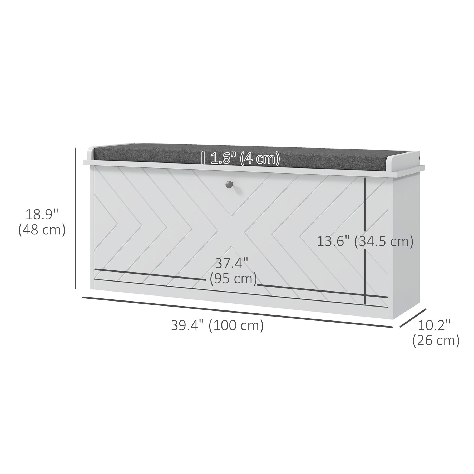 - • Overall Dimension: 39.4" L x 10.2" W x 18.9" H (100 x 26 x 48 cm)