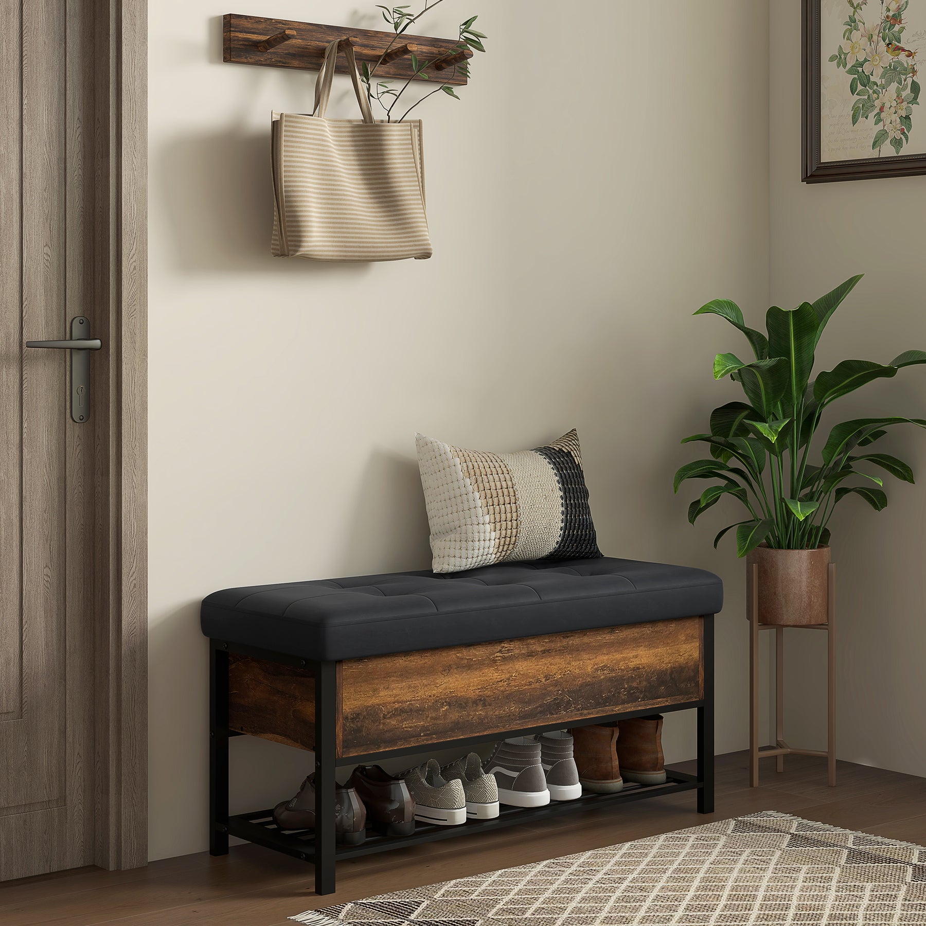 It's time to organize your shoes with our HOMCOM shoe storage bench. Its industrial look makes it pair well with any décor in your room. You can put socks, keys and anything else you would like in the hidden compartment and bottom shelf to enable space in your home. The open design makes it easy to find your shoes at once. Also, our shoe bench can be used as a storage unit in the living room, entryway and other places. Keep your shoes neatly and tucked away with our entryway bench with storage.