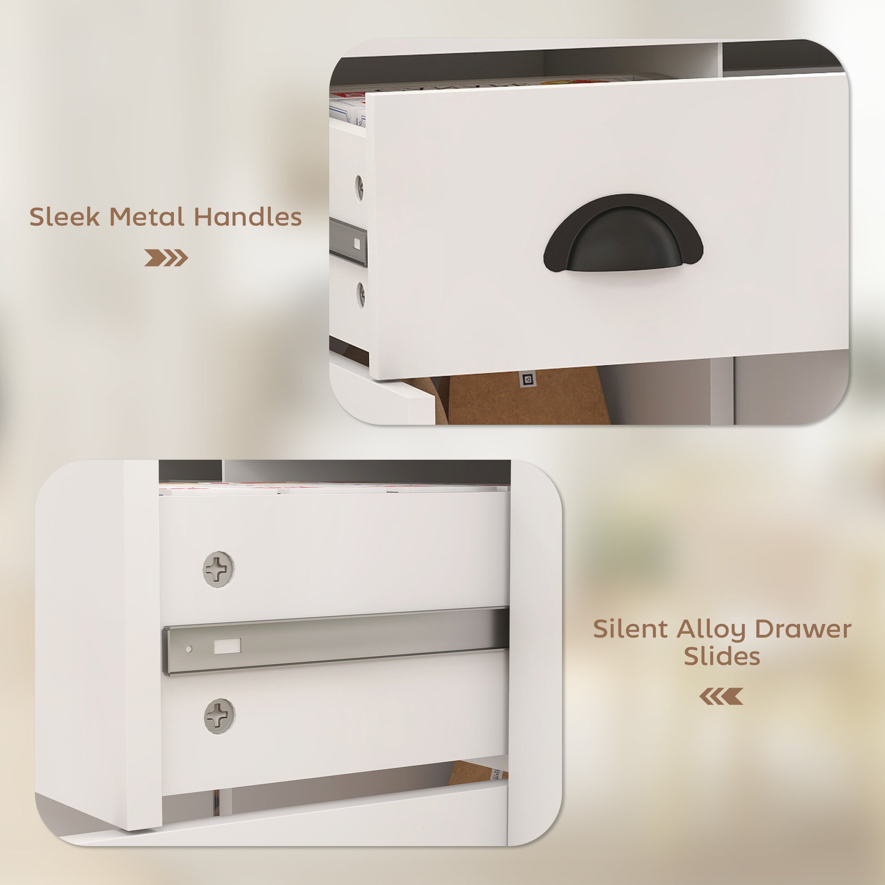 - • Silent alloy slides ensure smooth operation, built to endure