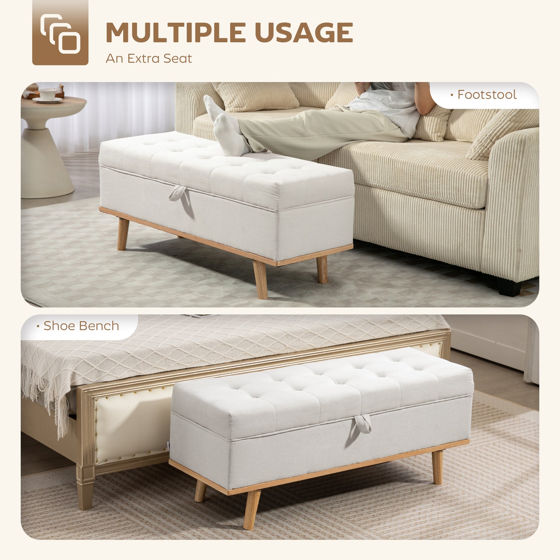 Tired of living room clutter and lacking a truly relaxing spot? The constant mess can be stressful, and flimsy furniture offers no peace of mind. This HOMCOM storage ottoman provides a solution. Tuck away blankets and books in its spacious compartment. Sink into the plush sponge top, supported by a solid wood frame and steel legs, for a secure and serene moment of comfort in your organized home.