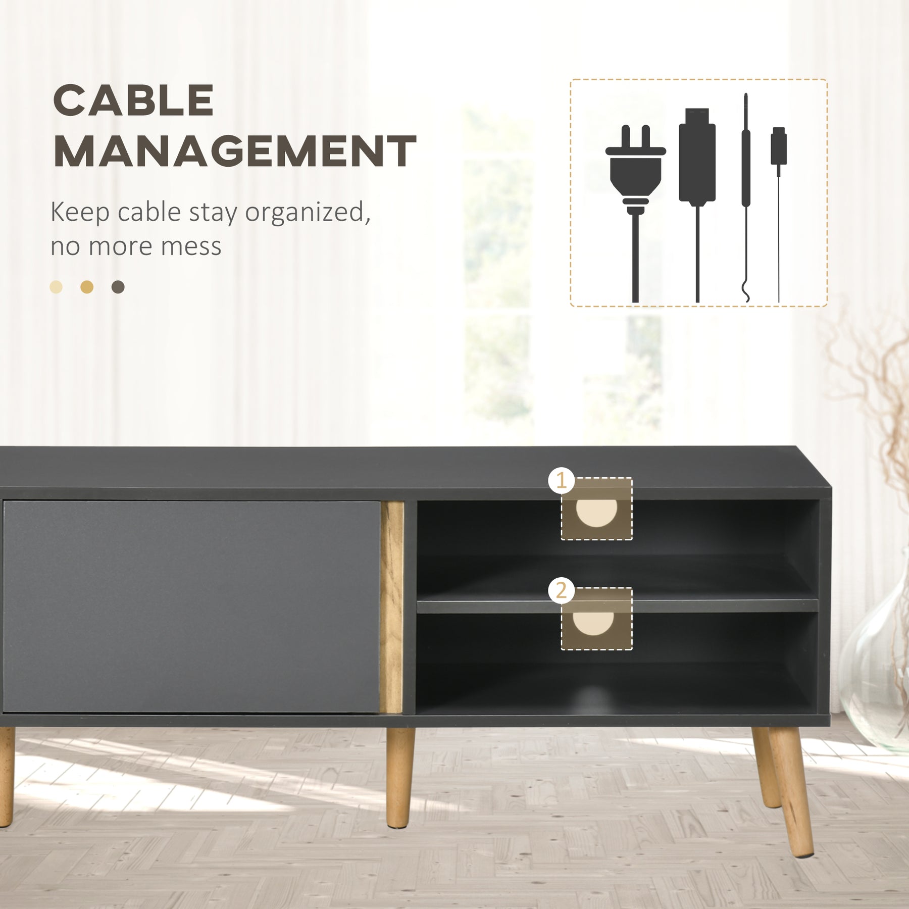 Upgrade your living room with this HOMCOM TV stand with storage. This TV console does more than holding your TV, it has two enclosed cupboards and open shelves to provide large storage space for your favourite movies, a collection of video games or books you love to read. Additionally, there are two cable holes for organising wires without the mess. Without a doubt, this TV unit will be a perfect companion for your relaxing moments.