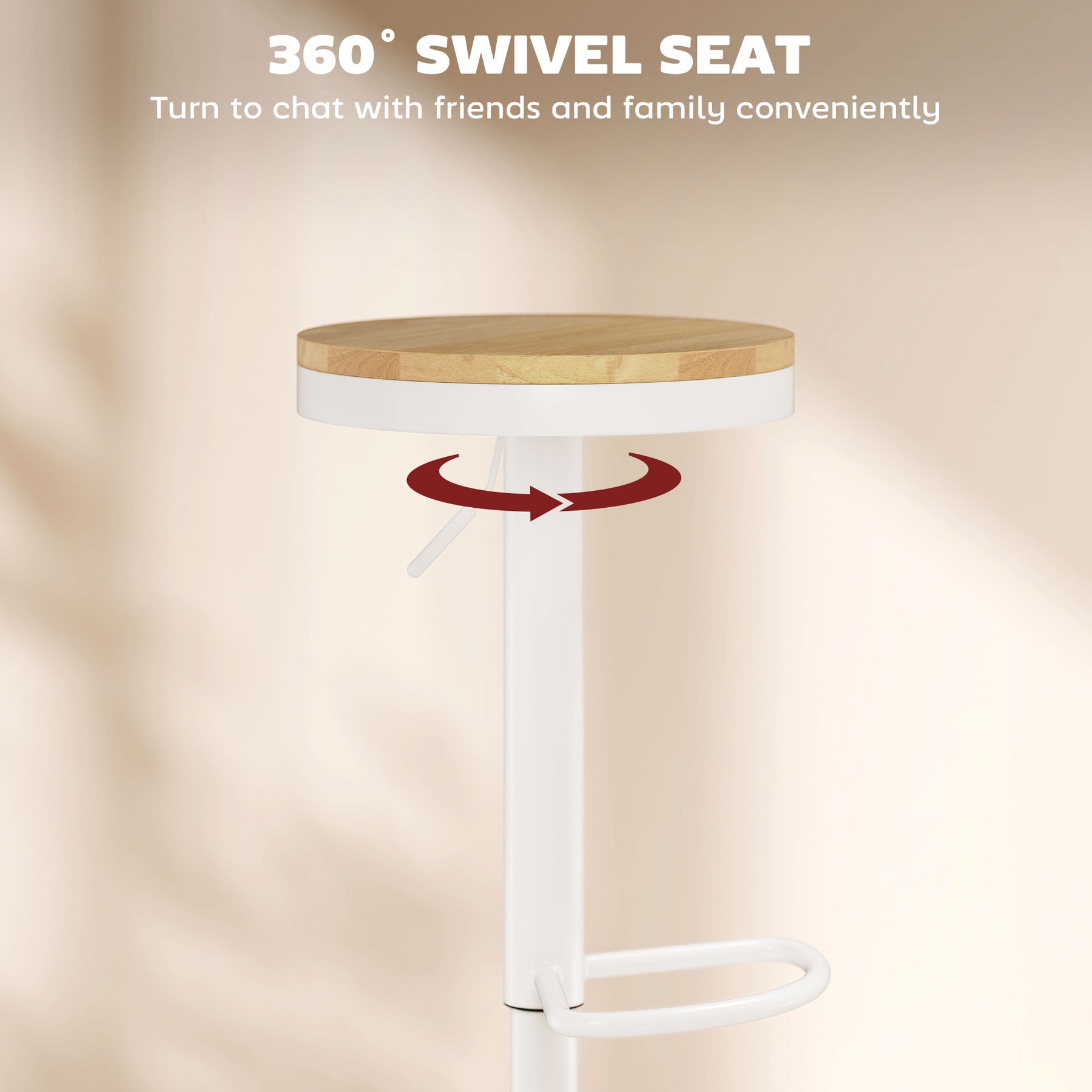 Picture a lively evening with friends, where conversations flow effortlessly around your HOMCOM set of 2 bar stools. These kitchen barstools with adjustable height and 360° swivel seat adapt seamlessly to any bar or counter, offering a modern touch to your space. With its classic solid wood seat and sleek steel frame, it adds a sophisticated charm to your home. Enjoy the convenience of a quick 15-minute assembly, transforming your kitchen into a welcoming haven.