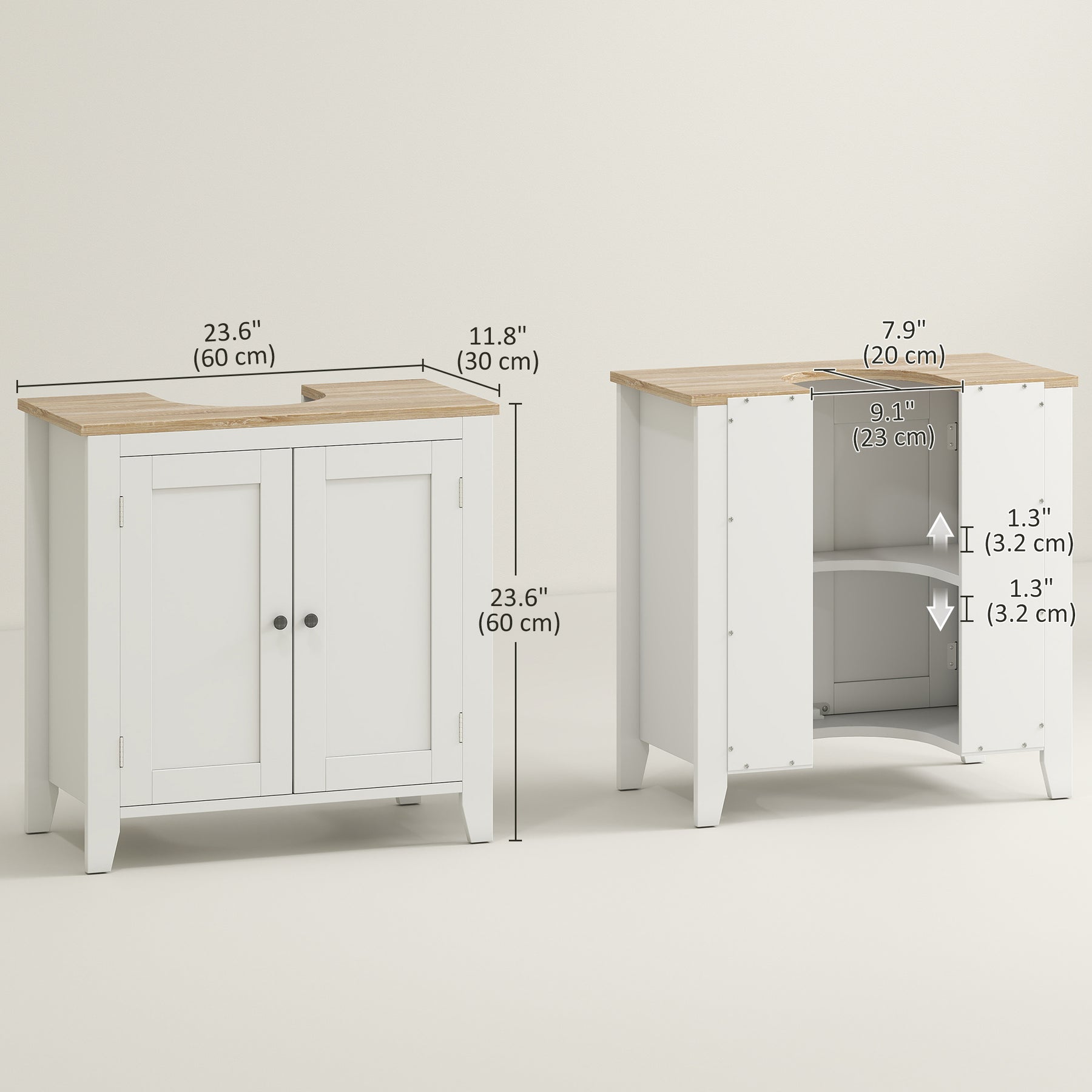 Maximizing space in your bathroom has never been easier, thanks to this bathroom sink cabinet from kleankin. A modern design and white colour give it an easy and versatile feel which blends into the room with ease. This sink storage cabinet is made from an MDF for supreme strength, with the 'U' cut out allowing it to slot in snuggly around the sink and pipes. Adjustable shelves inside the under sink unit could cater to your different storage needs.