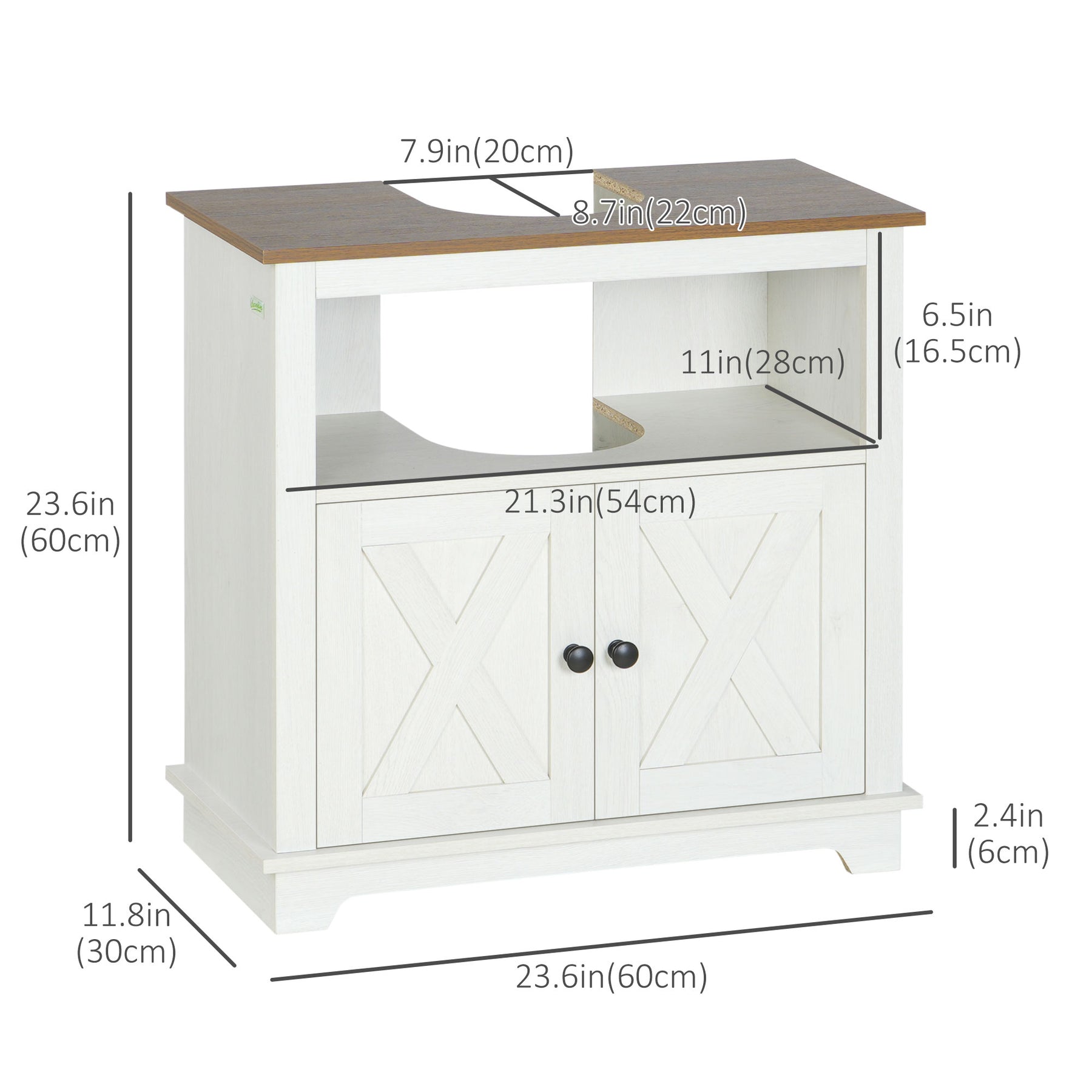 This 24 inch bathroom vanity fits easily in small bathrooms, providing a facelift feel with modern farmhouse detailing and a combination of open and hidden shelving. During daily sink activities, countertop items and shelf items will be easy to grab within quick reach, while a cabinet makes for a neat and tidy display that keeps long-term items out of sight behind closed doors. A water-friendly top surface withstands splashes. Create a smooth and contemporary bathroom with kleankin.