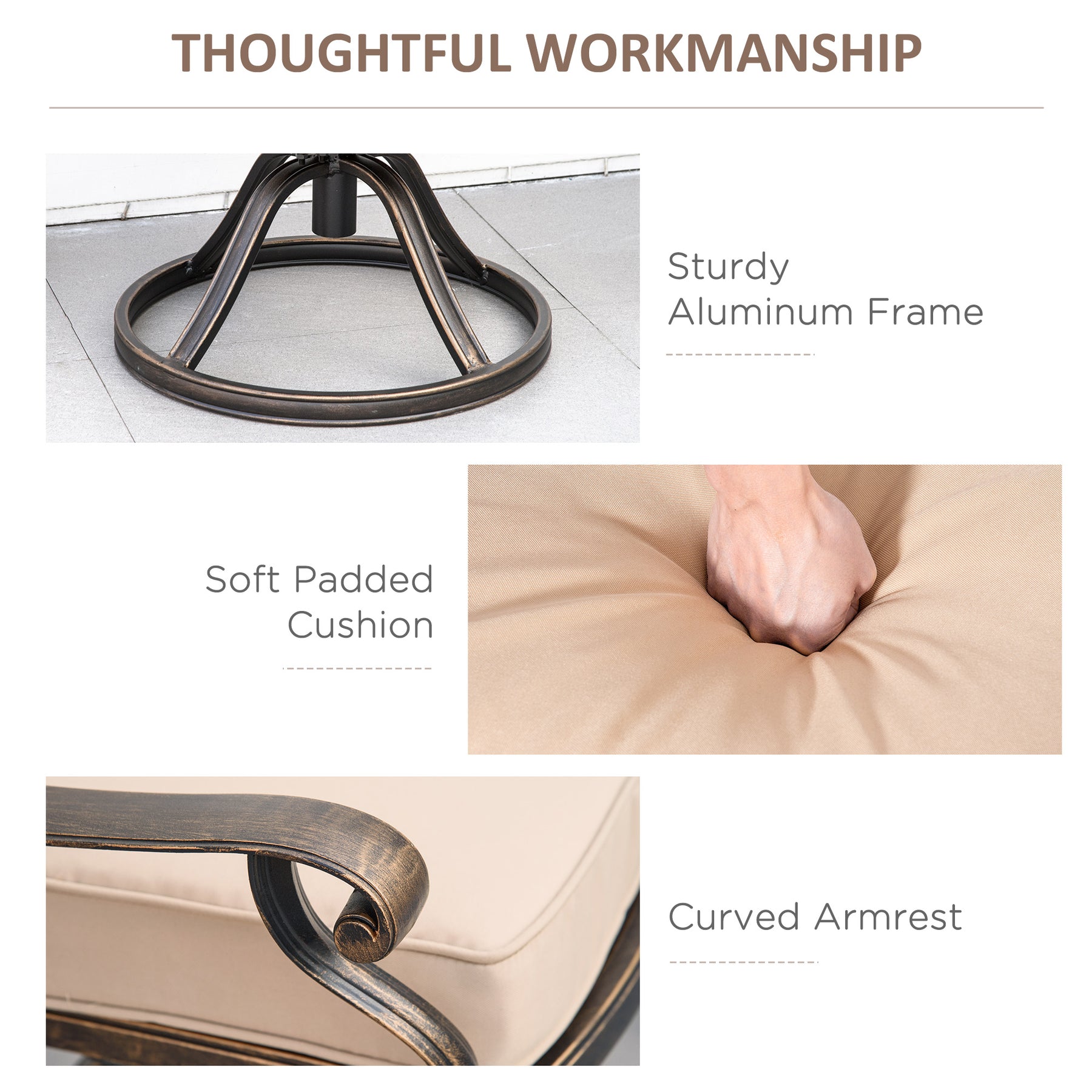 Boring patio? Brighten your backyard with Outsunny's outdoor swivel rocker set and make the outside of your home just as inviting as the inside. Expertly designed, our rockers allow you to relax in comfort with features such as 360° swivel and rocking function. It's made for outdoor use with a sturdy aluminum frame that is durable and low maintenance. Comfortable, thick foam cushions ensure your ultimate sitting experience.