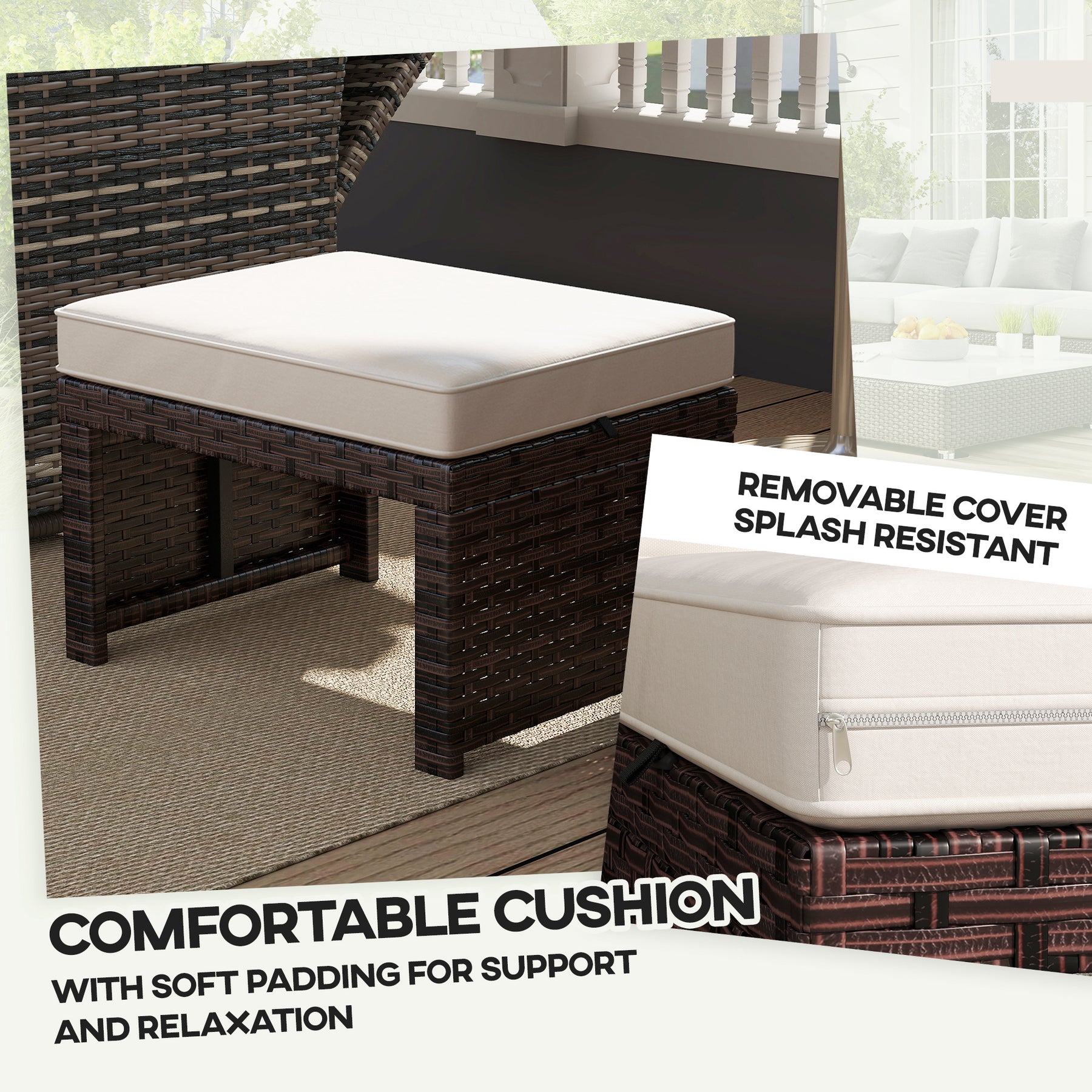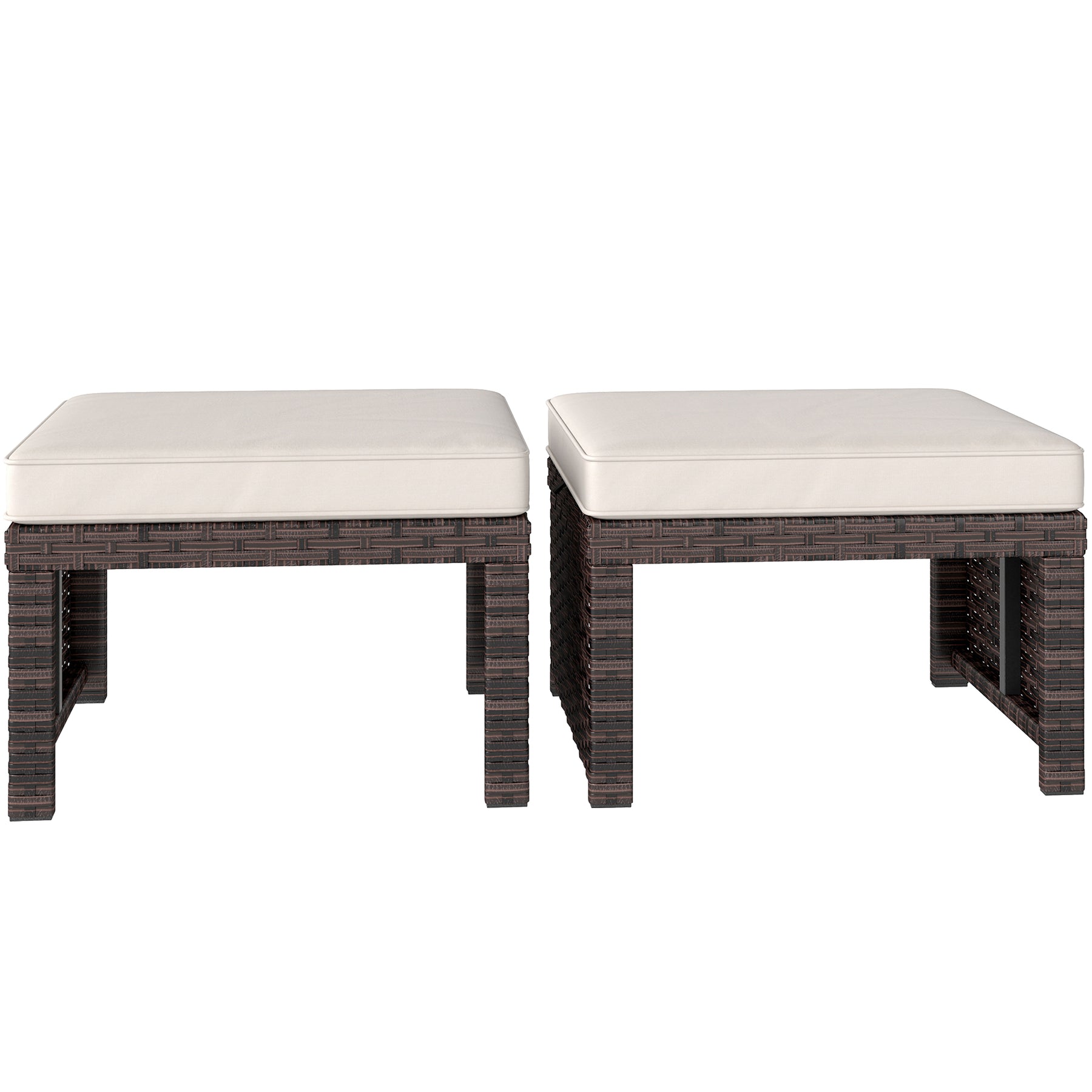 Enhance your outdoor living with this wicker ottoman set from Outsunny. Versatile use as extra seating, outdoor footrest, or side table. Built with powder-coated steel frame wrapped in UV and weather resistant hand-woven plastic wicker, each outdoor ottoman brings strong support and timeless charm to the outdoors. With comfortable cushions featuring horn toggle buttons and zippered covers, you can rest your feet up next to your seat in the patio, porch, or yard just like indoors.