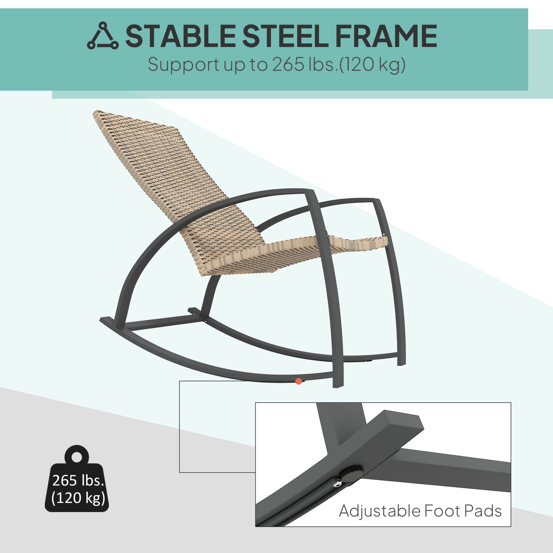 - • Rust-resistant steel base supports up to 265 lbs. (120 kg)
