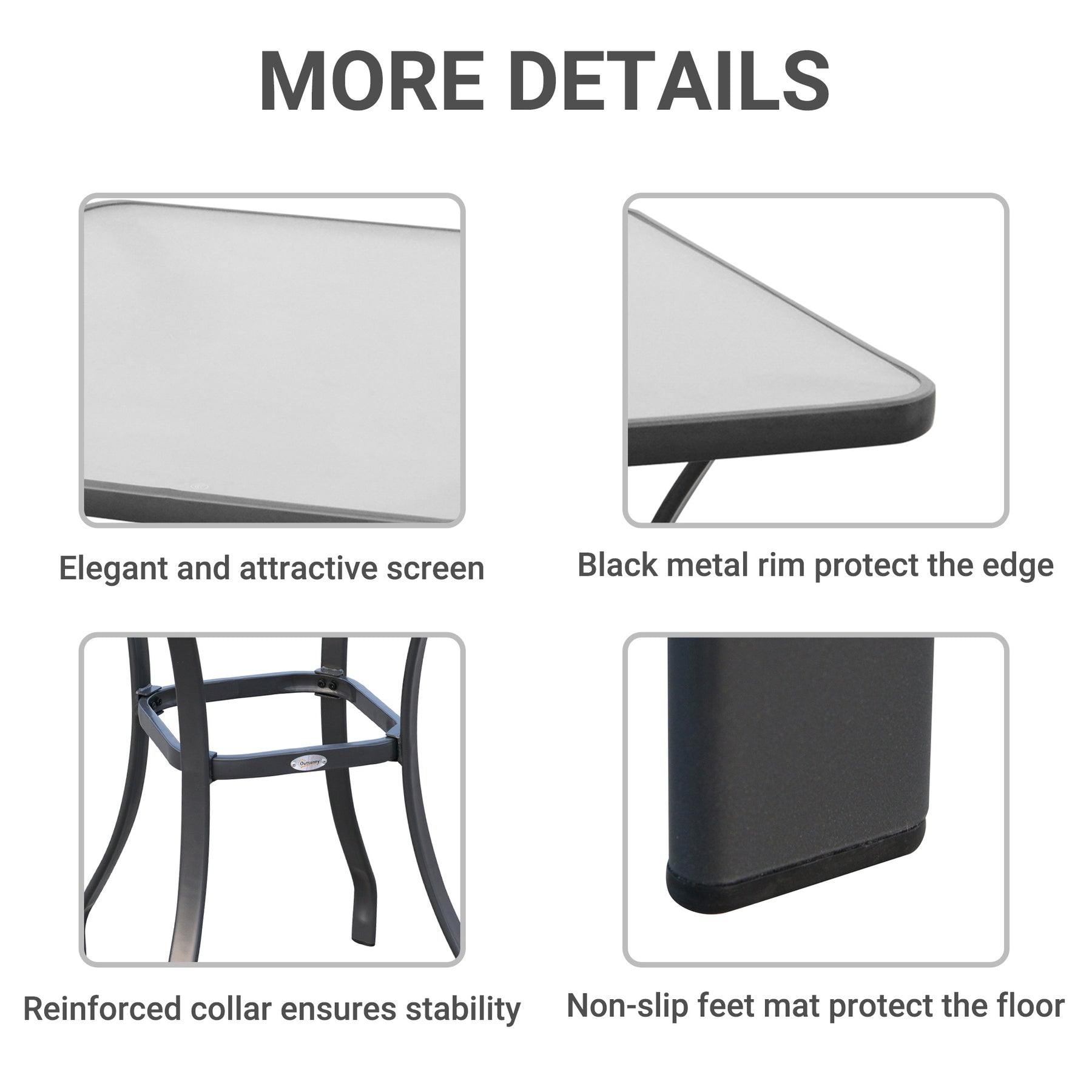Enjoy the outdoors more by eating outside regardless of the space you have with our Outsunny 34” outdoor patio table with water grain tempered glass top. Perfectly designed to take advantage of smaller areas, it’s the ideal size for a patio space or cozy breakfast nook. The contemporary design is the right combination for your patio or garden spot. Just pull up a chair sit down and enjoy a cup of coffee or have a pleasant meal outside with our outdoor tables for patio.
