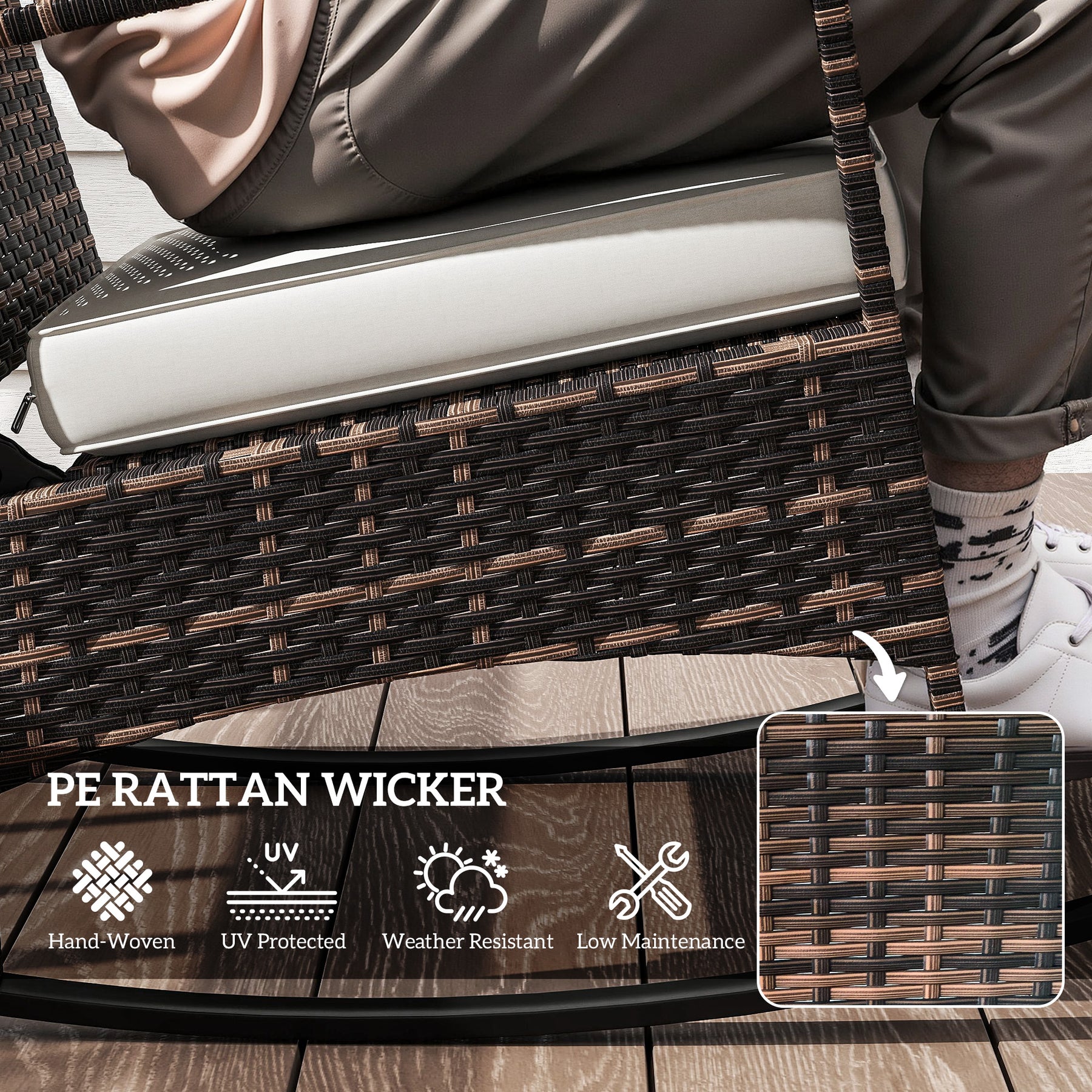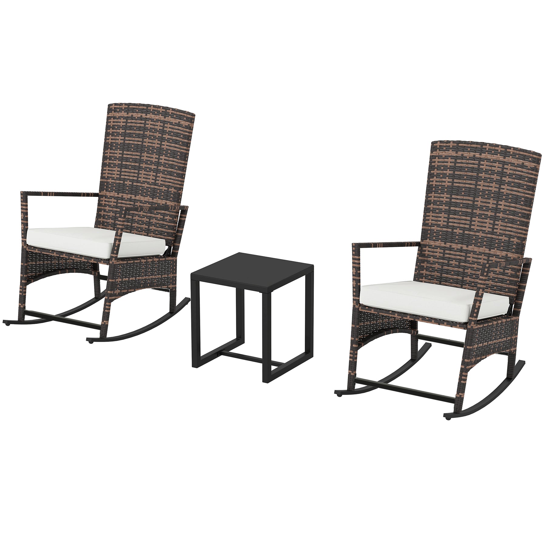 Rock the day away and recline in optimal comfort with this Outsunny outdoor bistro set, with two reclining rocking chairs and a square glass-top table. The powder coated steel frames offer a strong core, wrapped in tough and protective plastic wicker - a stylish patio conversation set for outdoor living. The chairs feature a rocking base to sway forwards and backwards gently and an adjustable high back for your control - an excellently relaxing outdoor table and chairs set!