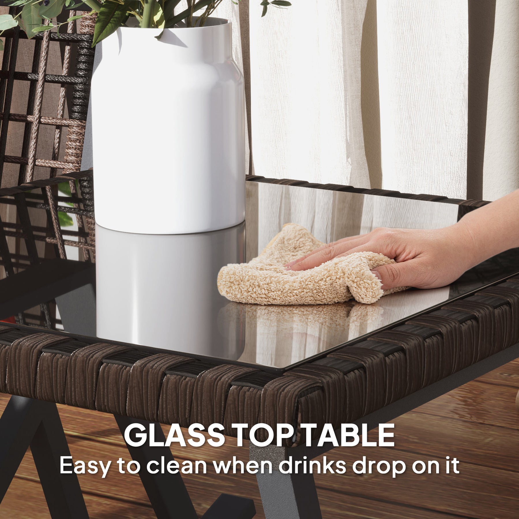 - • Material: Steel, PE Wicker, Tempered Glass, Polyester