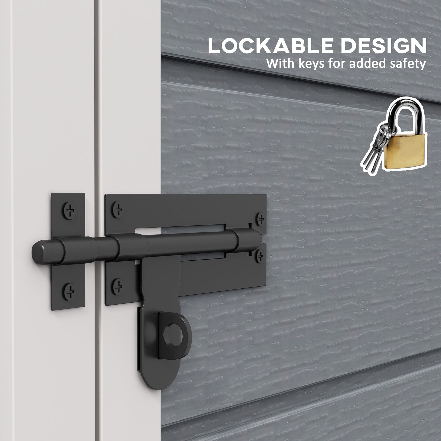 Easily add storage space and value to your property with a garden shed from Outsunny. Its waterproof PP roof keeps expensive equipment safe, while ventilating windows helps mitigate moisture and musty odours. The door features a locking mechanism to protect your tools from theft and misuse. You'll have plenty of room to roll out your lawnmower and space for shovels, seeds, soil, and rakes. Get out, get productive, and get Outsunny!