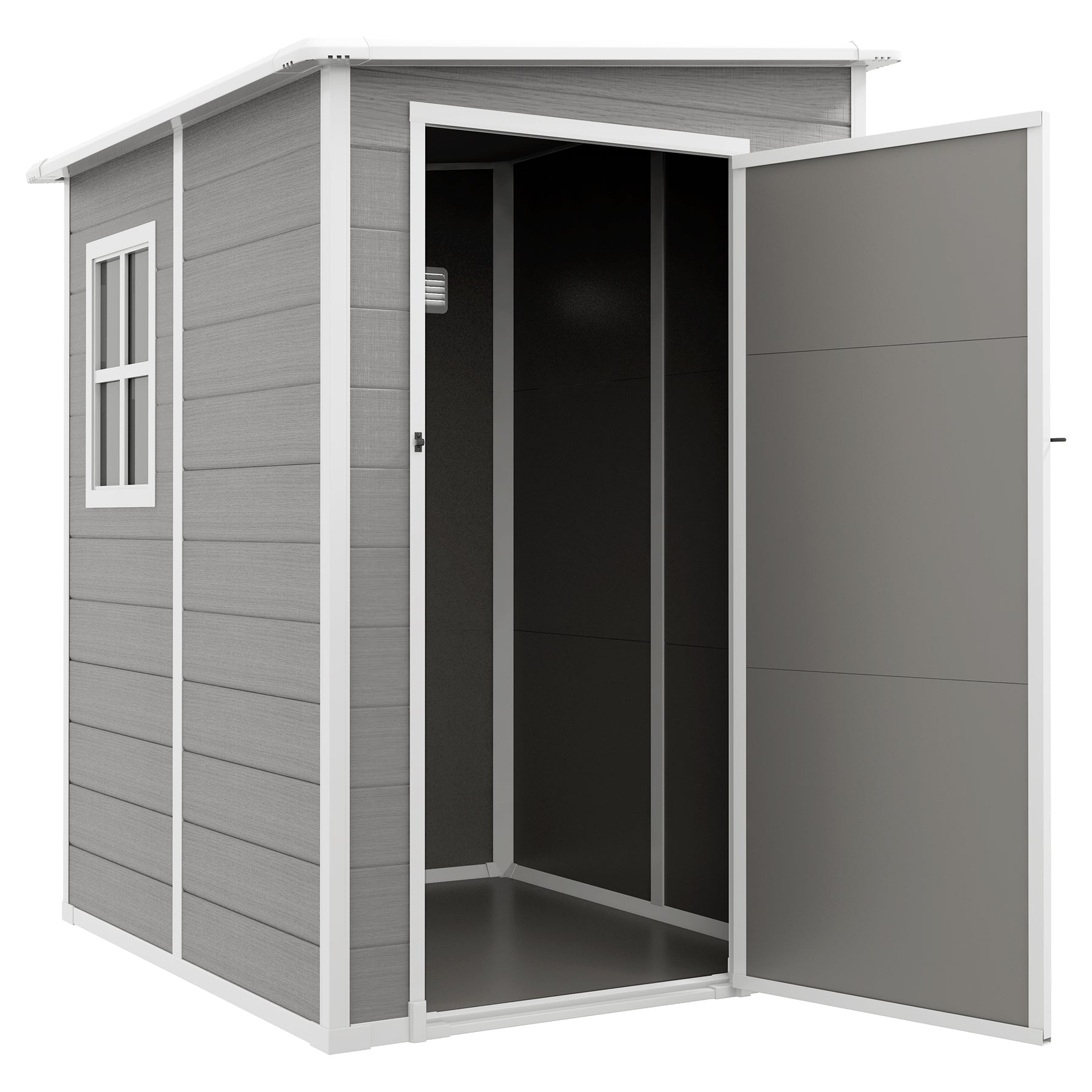 - • Easily position this outdoor shed in any corner of your yard with its lean-to-wall design