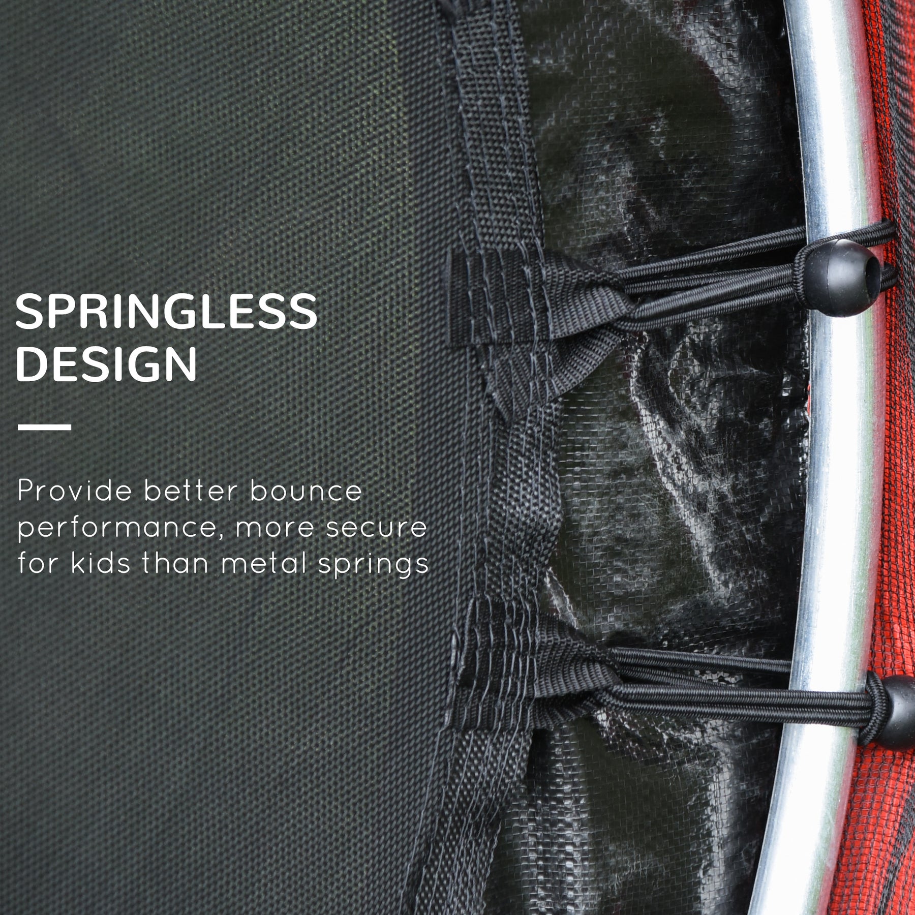 If you're looking for a low-impact way to give your child a fun cardio workout, the Outsunny Trampoline with a security enclosure net is an excellent choice. It is constructed with a reliable metal frame for long-lasting use, and the enclosure net enhances safety during play. This trampoline uses high-strength bungees instead of traditional metal springs to deliver a great bounce while reducing the risks associated with metal springs.