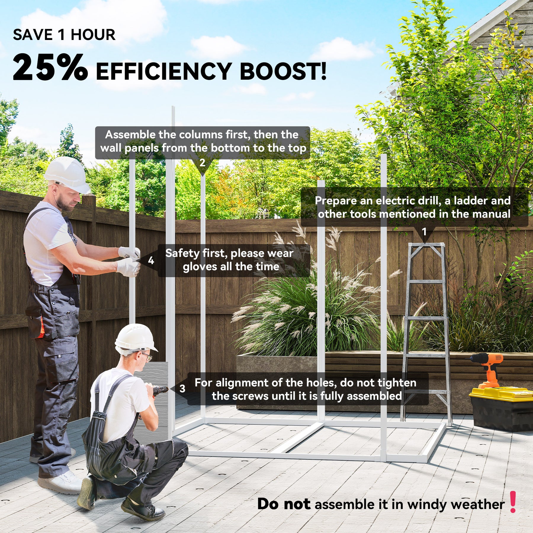 - • Installation requires 2-3 people, includes protective gloves