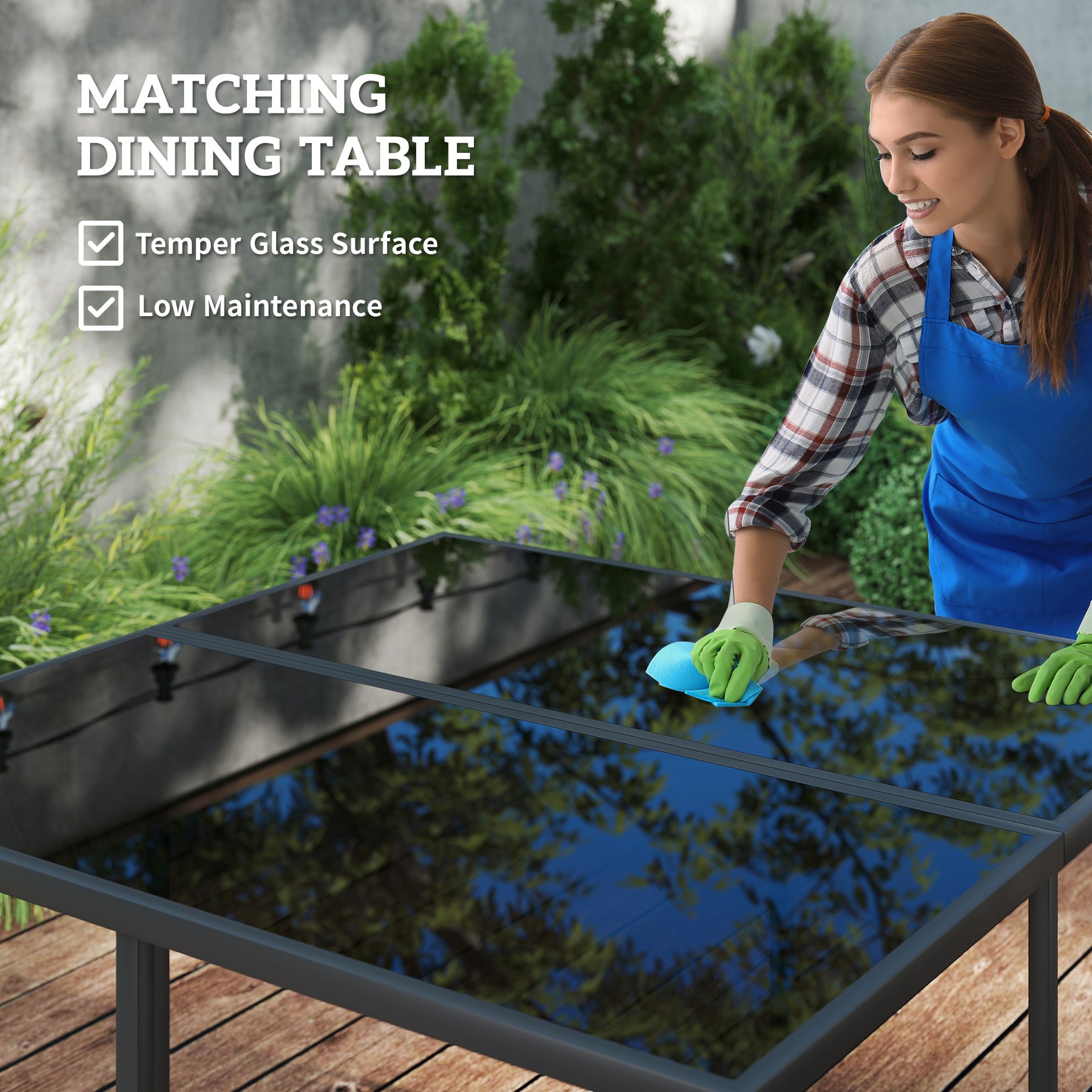 Transform your outdoor gatherings with the Outsunny 9-piece outdoor table and chairs. This patio conversation set includes a table, 4 chairs, and 4 stools that tuck neatly under the table for space-saving magic! Enjoy the comfort of thick, washable cushions and dine in style with a sleek tempered glass tabletop. This dining table set suits any patio conversation set or backyard furniture ensemble.