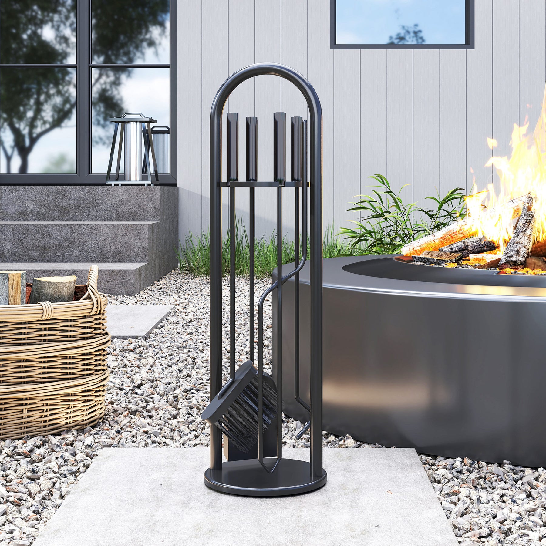 Warm up your hearth with the Outsunny fireplace tool set, a charming addition to any indoor or outdoor setting. This five-piece set includes a brush, a shovel, a poker, a pair of tongs and a round stand, all crafted in metal with a sleek black powder coating. Enjoy effortless maintenance and a timeless look with these essential fireplace tools.