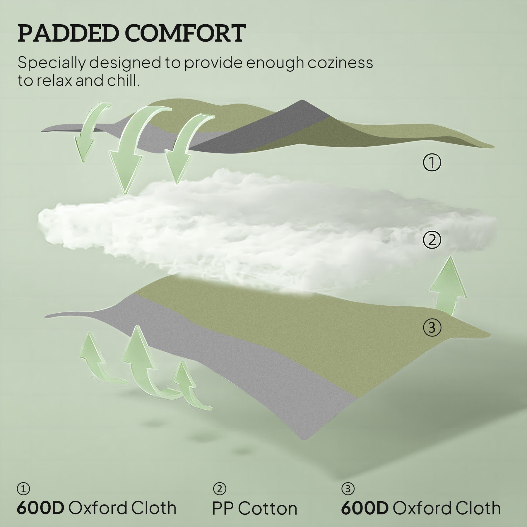 - • 600D Oxford cloth with PP cotton filling for soft and breathable sitting