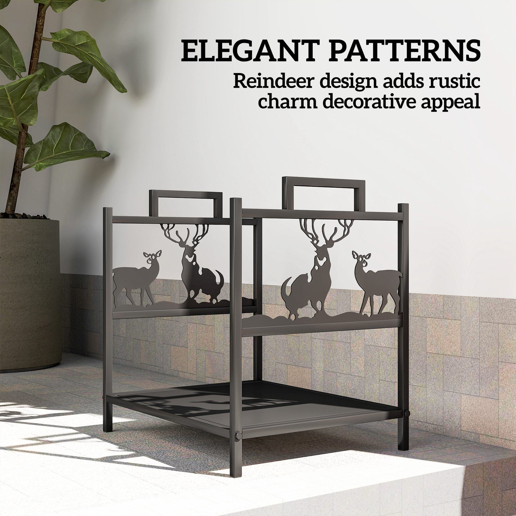 Tired of the constant mess of wood chips and dirt around your hearth? This Outsunny firewood rack solves that problem with a solid base to catch debris, keeping your floors clean and protected. Its charming reindeer design adds a rustic touch to your decor, while the rust-resistant build ensures this outdoor firewood rack stands strong on the patio. Enjoy a tidy, inviting fireside experience without the usual hassle.